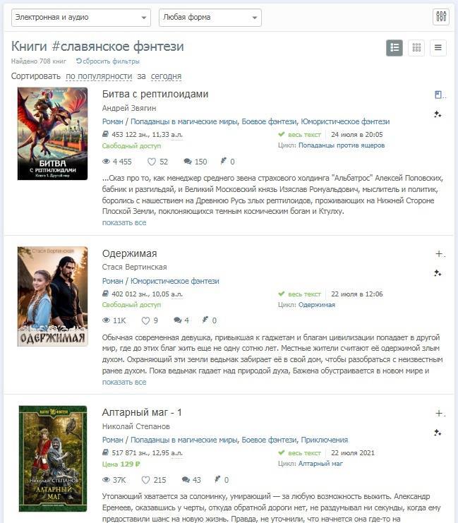 А вот что приятно не очень (и не очень понятно), почему нет на сайте такого жанра - "славянское фэнтези". Ведь, если задуматься, огромное поле деятельности.