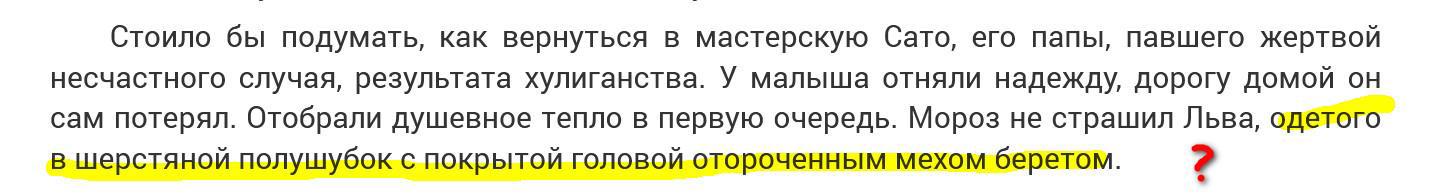 К тому времени у меня возник вариант, что Лев - это лев, хотя какой-то поразительно миниатюрный, но при попытке представить себе миниатюрного механического льва в полушубке и берете (я уж не говорю про само кошмарное построение фразы) мое воображение дало сбой.