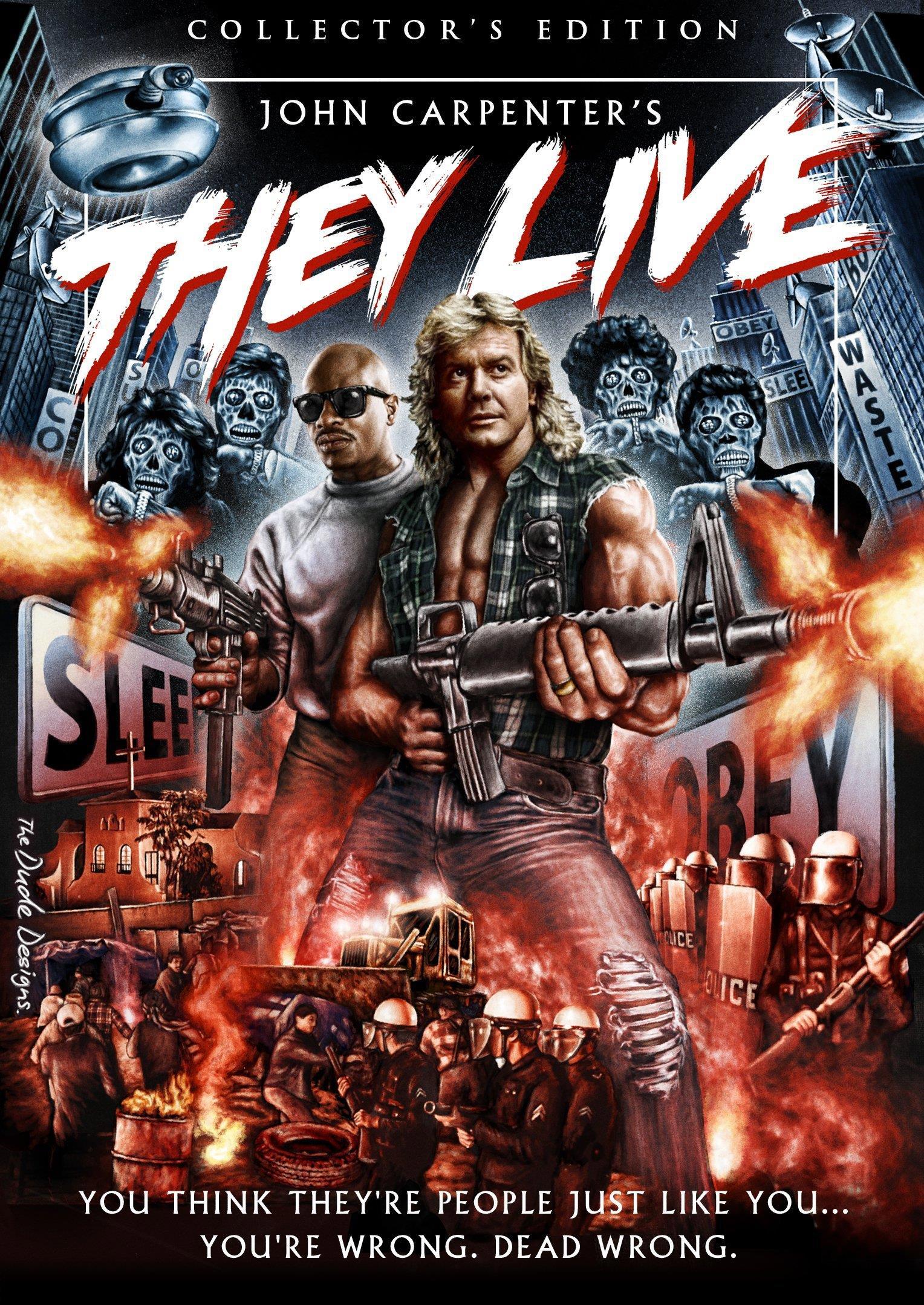 Считается, что фильм Джона Карпентера "Чужие среди нас" замаскирован под низкобюджетный боевик, чтобы привлекать к себе как можно меньше внимания. В фильме, впервые показаны те самые рептилоиды, пытающиеся захватить Землю, притворяясь людьми. Увидеть их можно при помощи специальных очков. Так же в фильме показано то, насколько трудно доказать обманутым людям, что их обманывают.