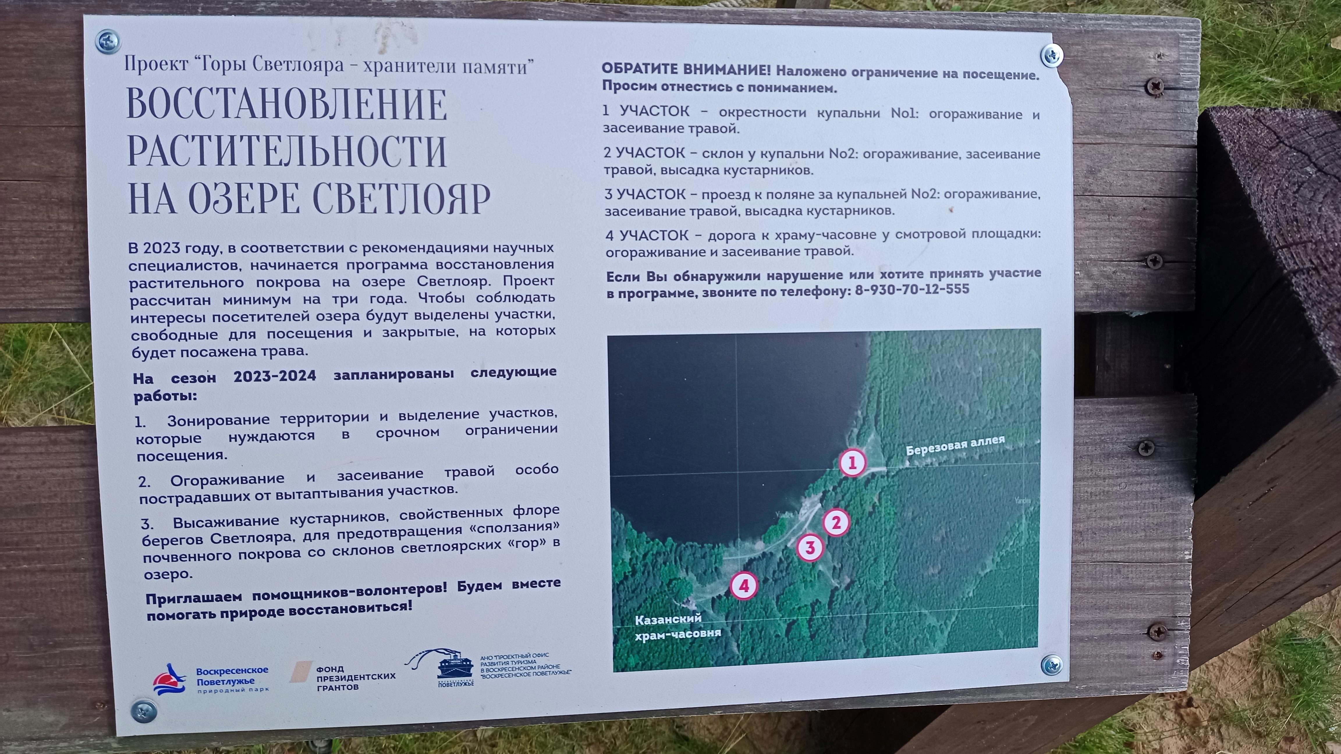 Но людей на Светлояре просто слишком много для озера. Тут ещё и социальный момент: Светлояр - это ведь бюджетный отдых. Берега истоптаны, везде тропы... Сотрудники заповедника, однако, работают: много участков огорожено чтобы по ним не ходили, на них высажены травы и кустарники, свойственные флоре берегов Светлояра. Есть волонтёры, не только местные, которые этим всем занимаются.