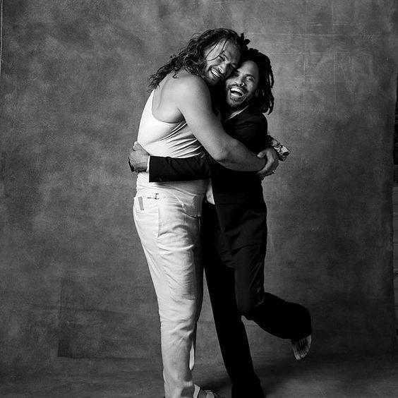 Например, на этом - Джейсон Момоа и бывший муж его нынешней жены. Которому он подарил копию своего обручального кольца, и Ленни в их доме - лучший друг и всегда желанный гость.
