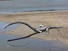 Жил в триасе. Похож на эласмозавра, но шея длиннее, а конечности -- лапы, а не ласты. Предком эласмозавра не является, сходство конвергентное. У некоторых особей шея втрое длиннее туловища. Замечательная животина.