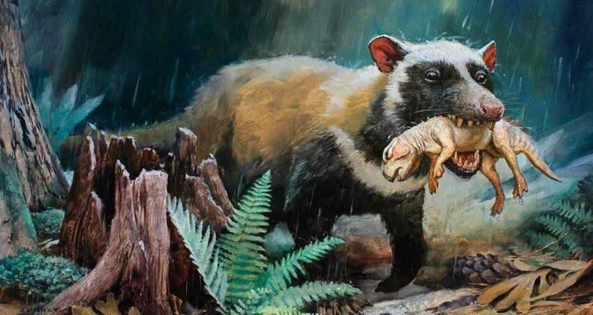 Он из нижнего мела. Самое крупное млекопитающее на тот момент. Жрал динозавров -- ну, конечно, только некоторых. Во всяком случае, детенышей пситтакозавров -- жрал, что подтверждено исследованием окаменелостей и отражено на рисунке.