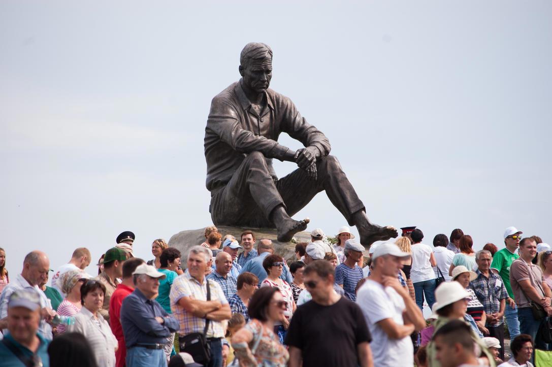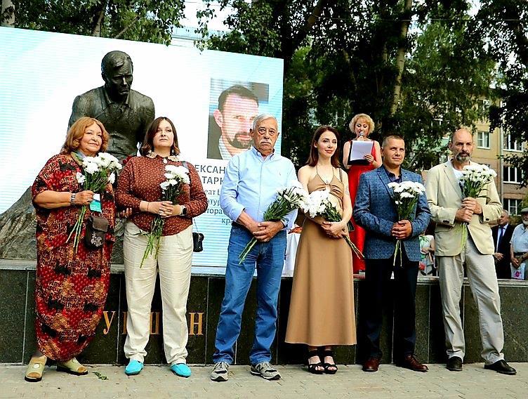 ...а накануне утром гости фестиваля открывали праздник у памятника писателю на улице Шукшина в Барнауле