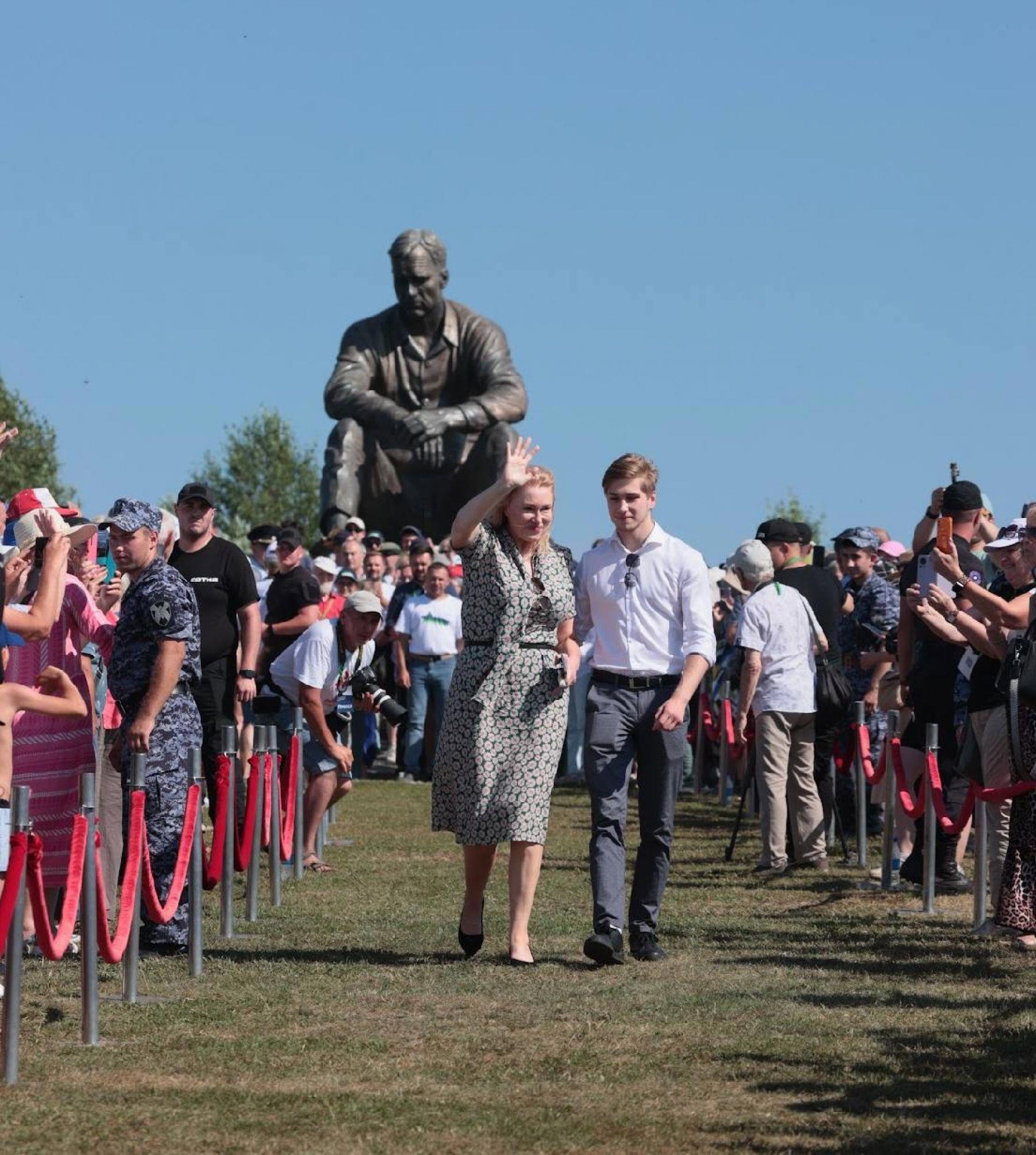 Мария Шукшина с сыном (27 июля 2024 год, село Сростки, гора Пикет, Алтайский край)