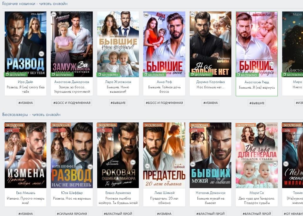 - Триггерные названия: измены, предательство, развод… Словно авторы пытаются задеть самые чувствительные струны женской души.