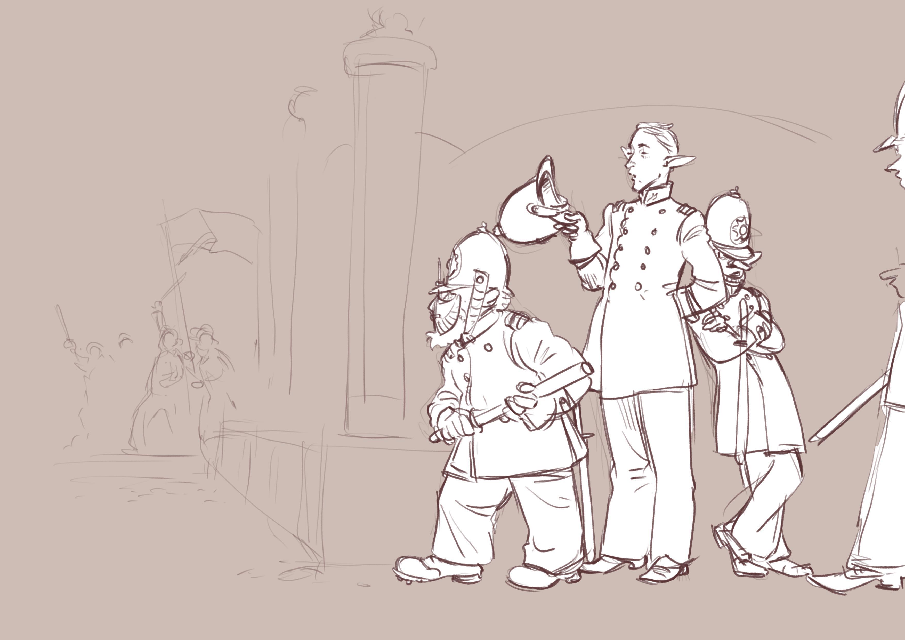 Автор: Александр ПрибыловКонечно, с текста. Но его опустим, так как текст принадлежит автору, а мысли художника могут воплотиться только в рисунок. Точнее в набросок композиции, в котором размечается пространство, отношения фигур сцены. И, желательно, настроение, эмоции персонажей, не только через мимику, но так же пластику и динамику.