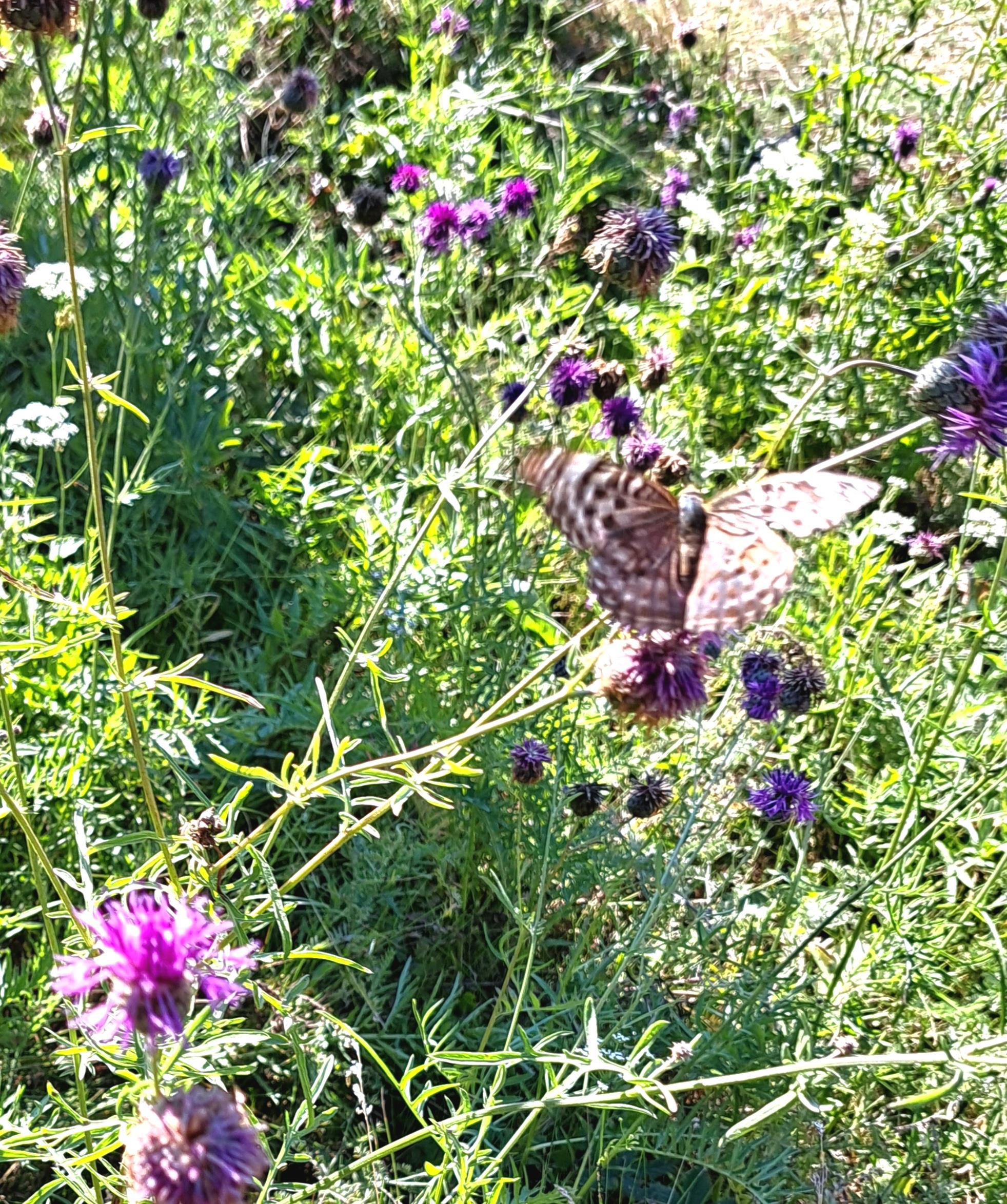 Вот такая гостья залетела на дачу. Ещё было много коршунов, и дятел прилетал каждое утро.