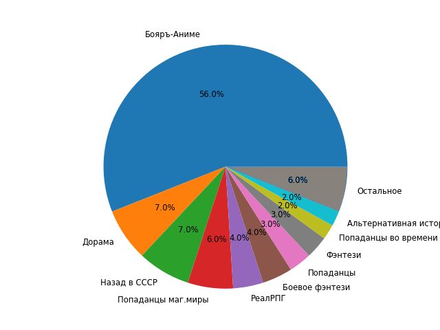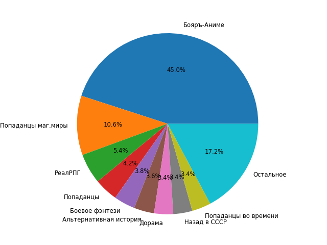 Информация собирается исходя из поисковой выдачи АТ, отсортированной по популярности за месяц: https://author.today/work/genre/all?rp=month&eg=-&fnd=false&page=1 (все фильтры были специально отключены).