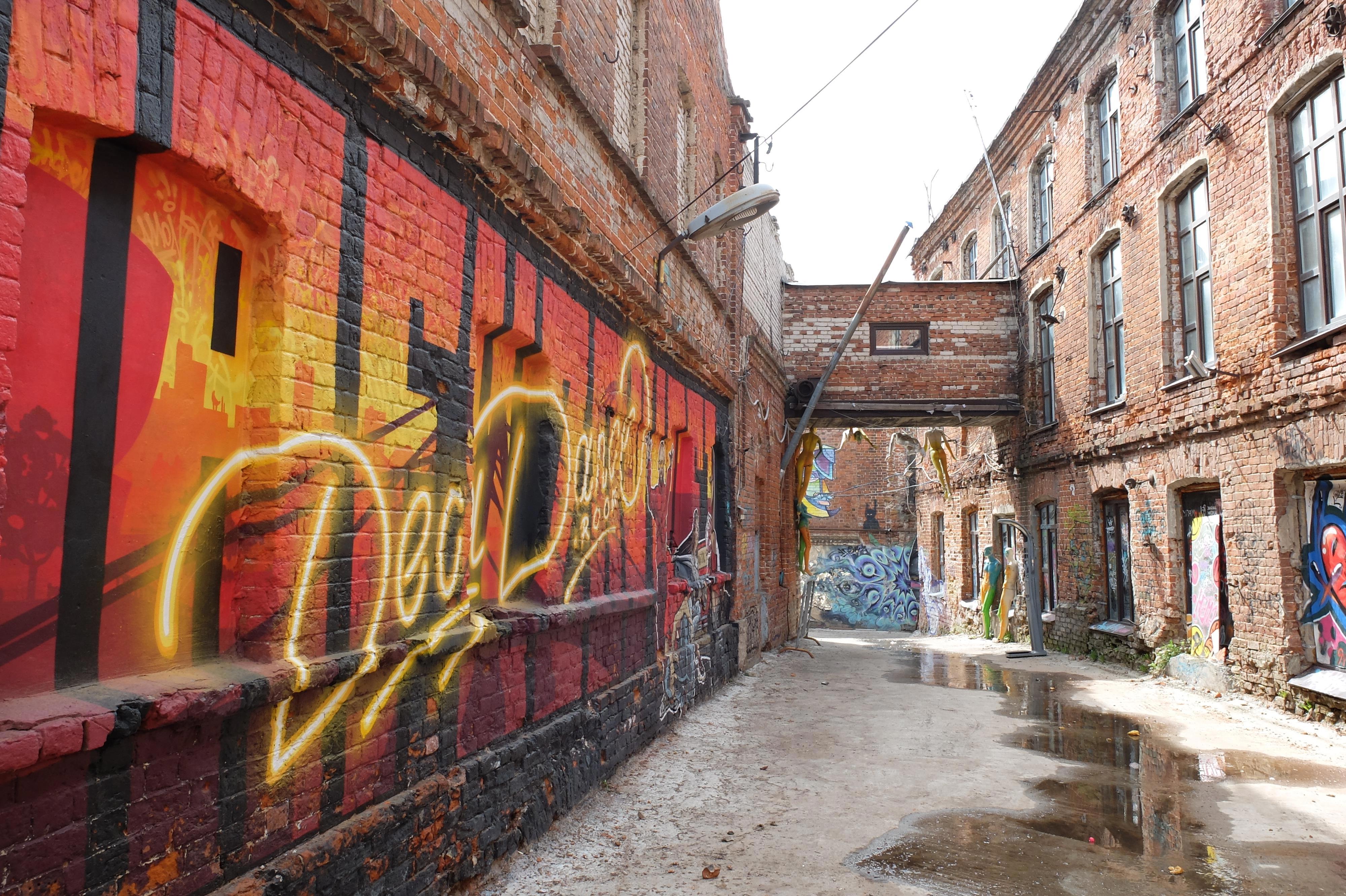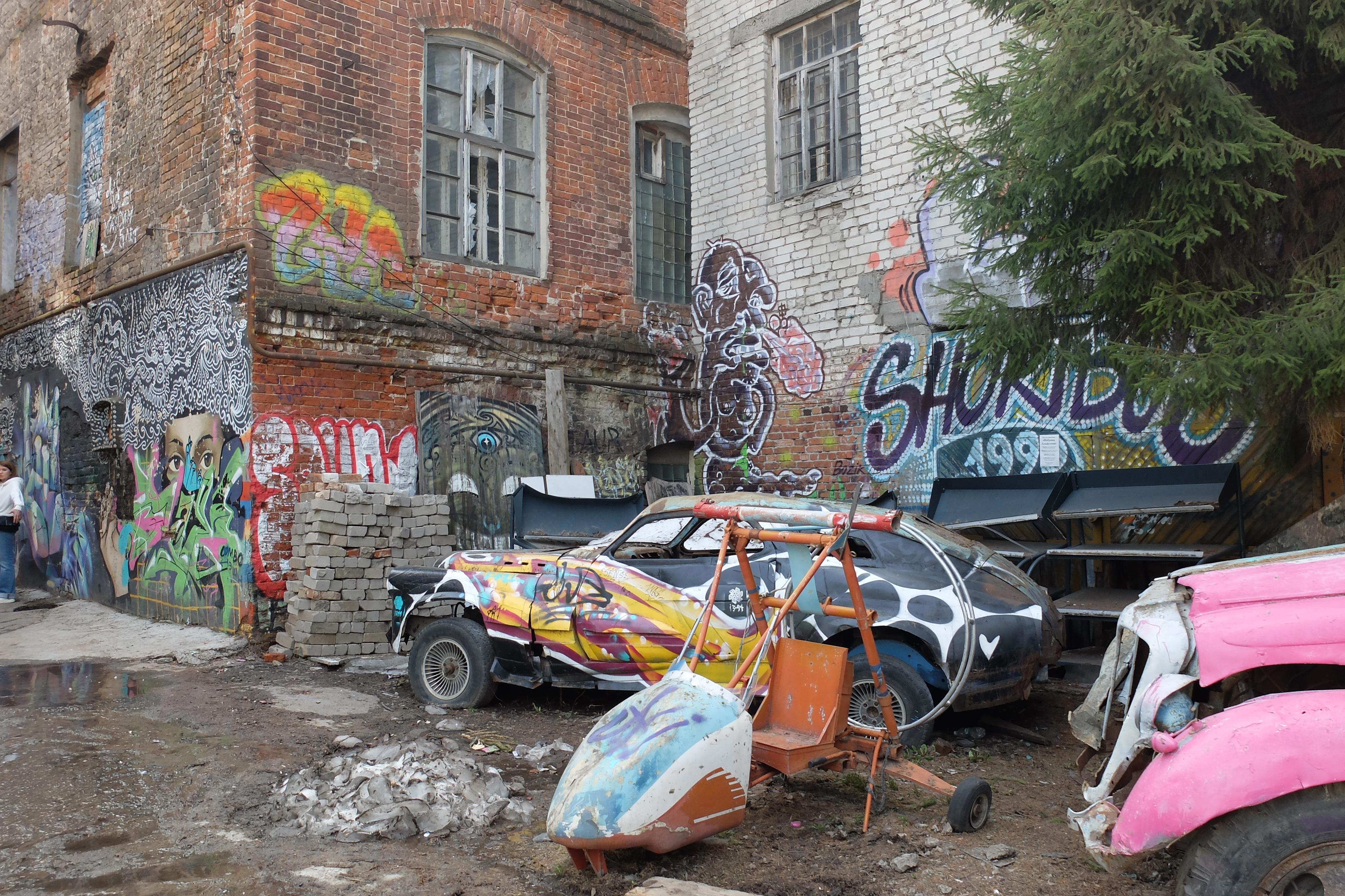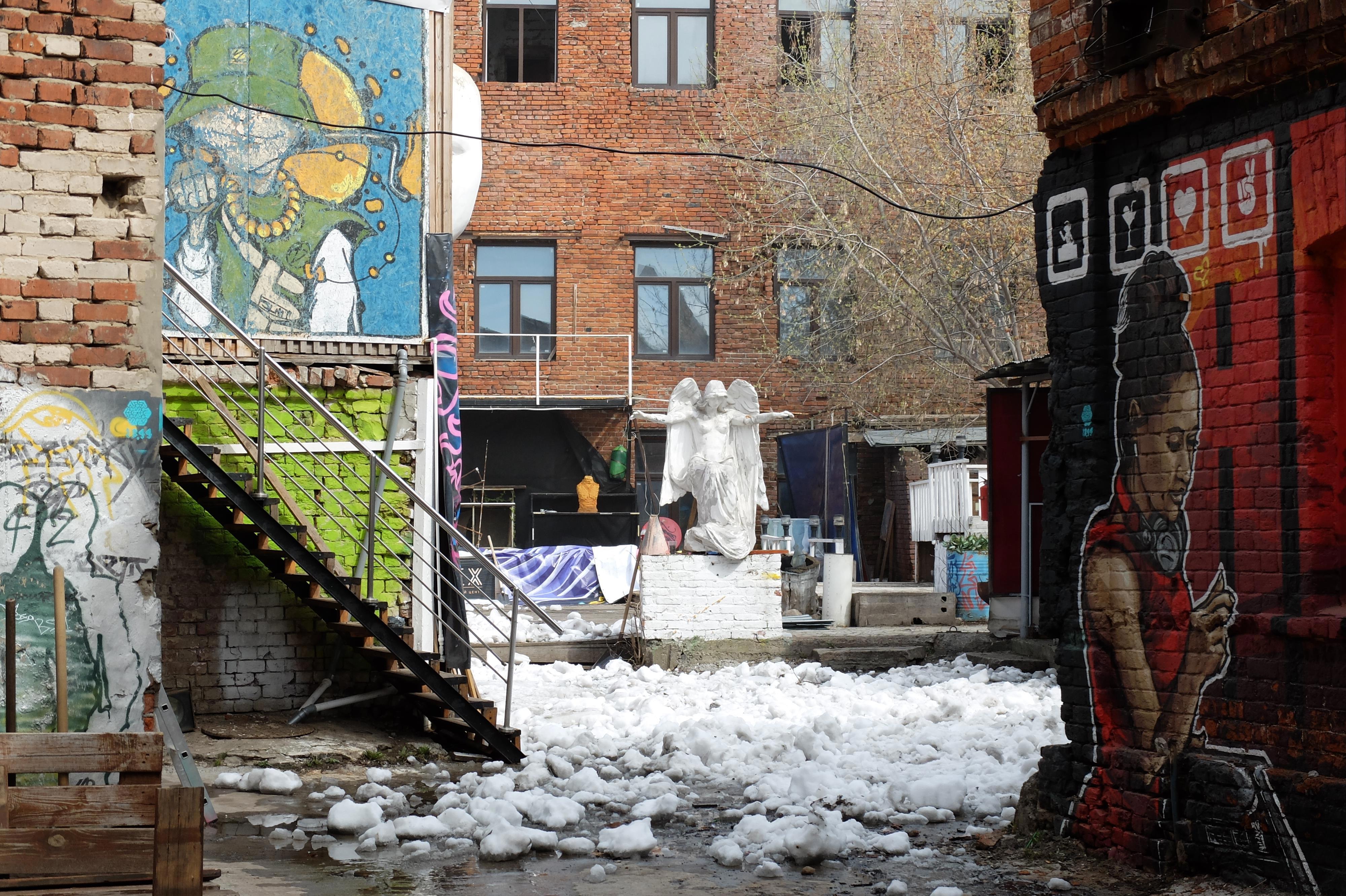 Итак, это загадочное (на самом деле, совсем не загадочное) место - бывшая фабрика Алафузова в Казани, точнее, один из её "кварталов". Арт-пространство, выставочный комплекс, место, где проводятся многочисленные тусовочные мероприятия - от квестов до стендапа.