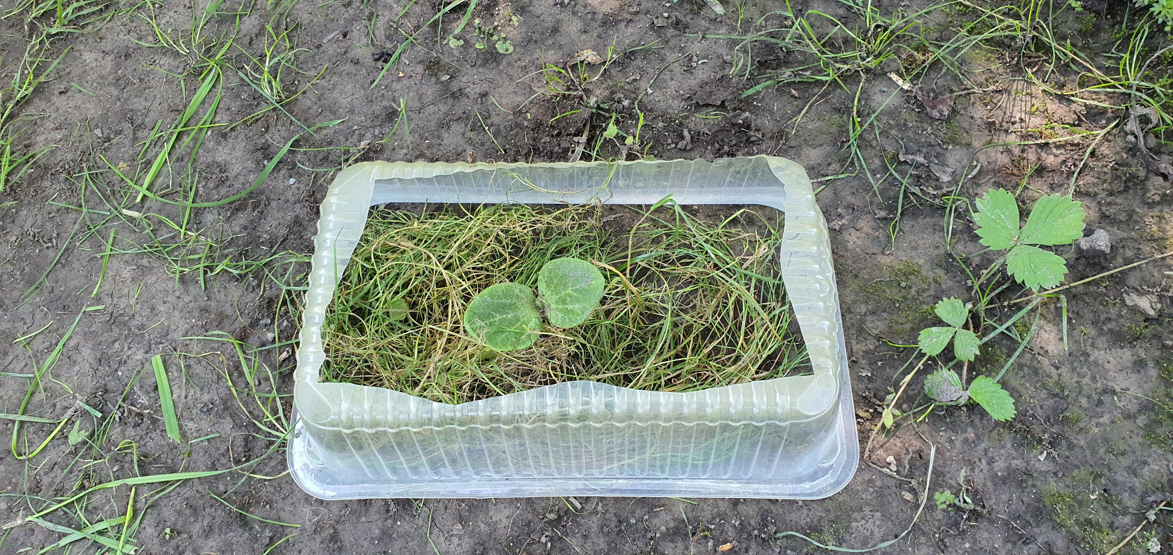В саду тыква проросла тока сча, про которую я уже и забыла. Поэтому, мы её огородили. Ато скошу ненароком.