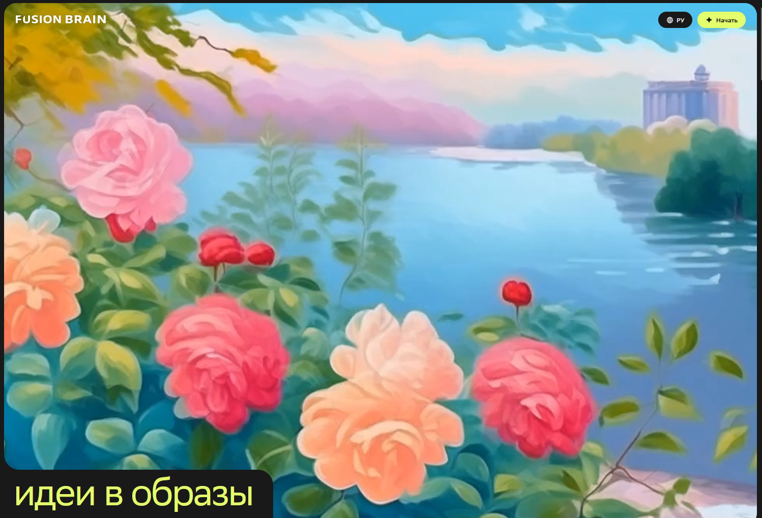 Неплохой генератор, позволяющий задать размер картинки и стиль. Есть возможность делать видео, но там всё печально. Полностью бесплатный и пока единственный русский.
