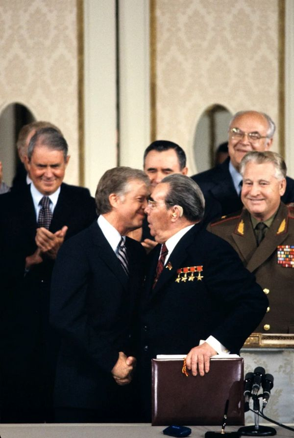 Посмотрите как отчаянно коммунист Брежнев пытается впечатать засос президенту США, капиталисту Картеру.