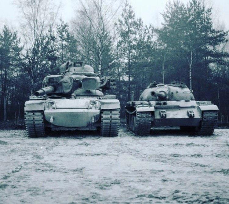 На фото Т-34-76 и Шерман. Разница в размерах на фото меньше заметна, а вживую так очень видно хорошо - силуэт что спереди, что сбоку у Шермана куда больше (пространство в танке просторнее, как уже писал)