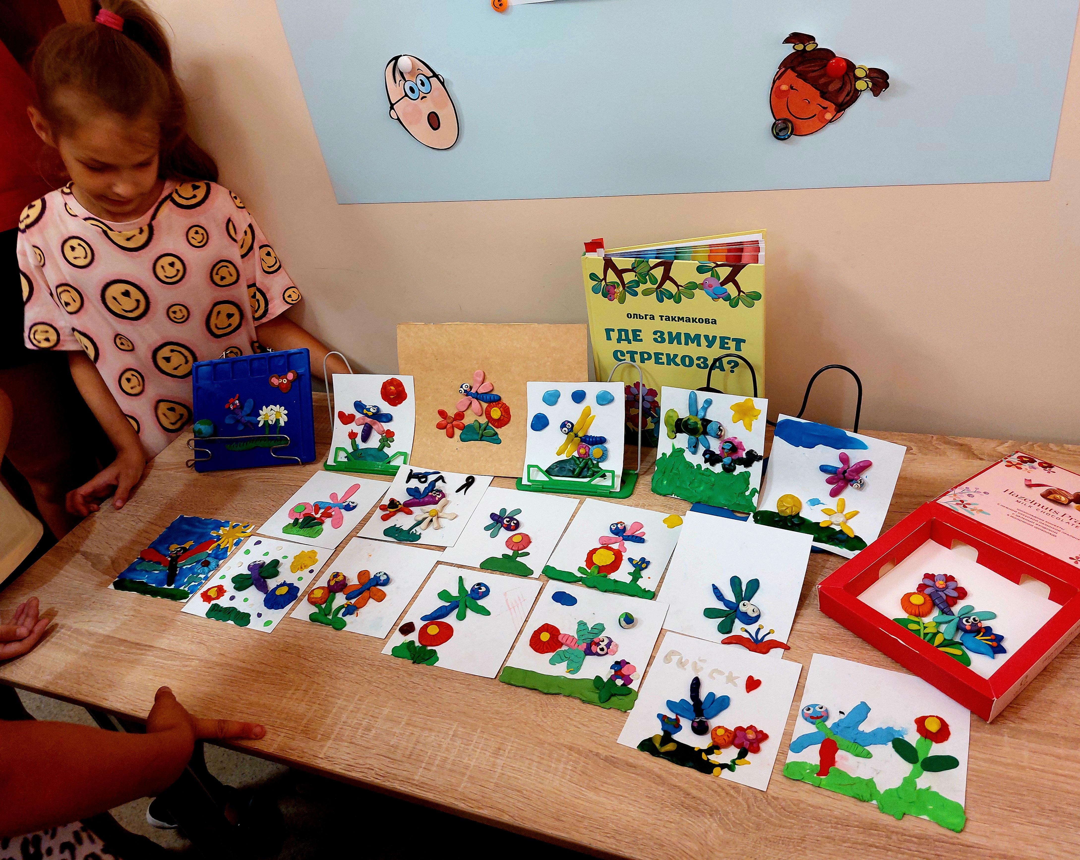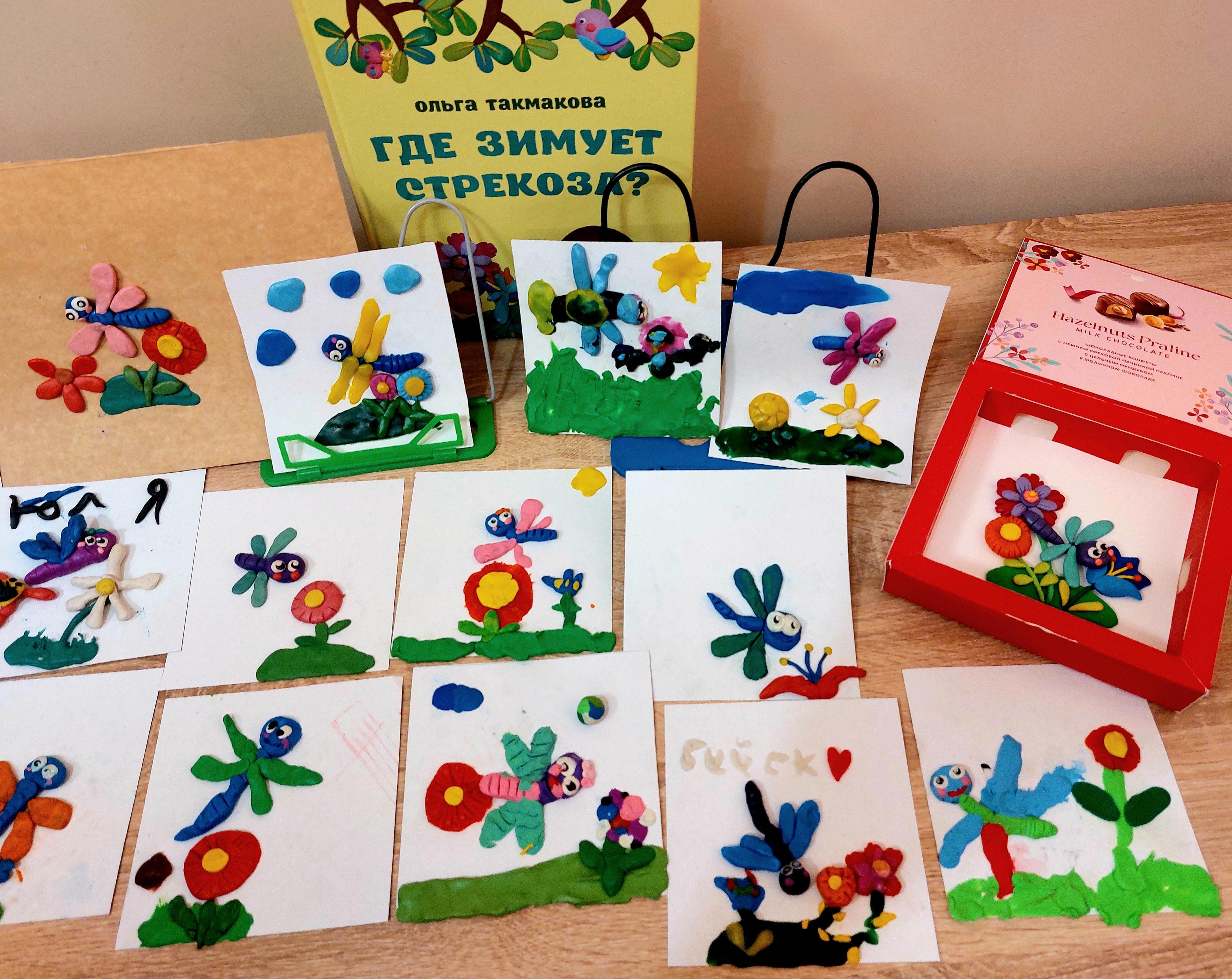 Благо рядом с детской библиотекой есть магазин канцелярии, там библиотекари подкупили недостающего пластилина, чтобы слепить стрекозу смогли все желающие...