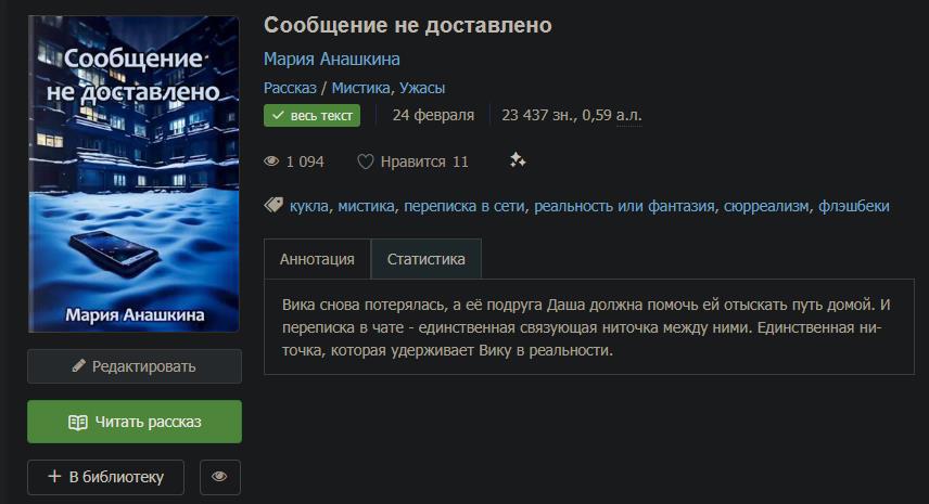 Автор: Мария АнашкинаРассказ, который не приняли на конкурс, потому что видите ли ничего непонятно и вообще фигня какая-то. Оставалось только посочувствовать организаторам, подивиться их методам отбора и на этом попрощаться с ними.