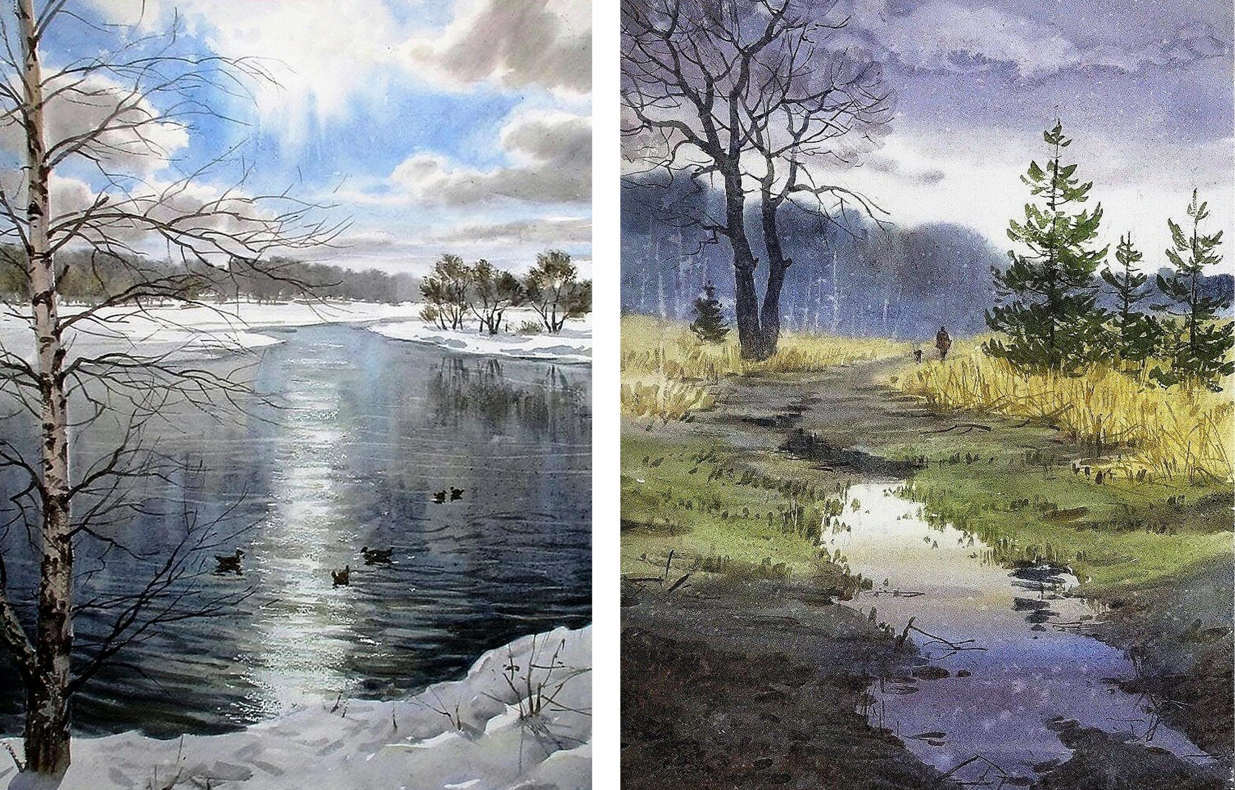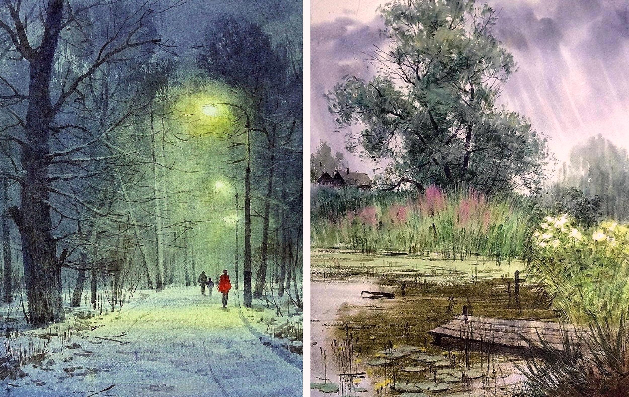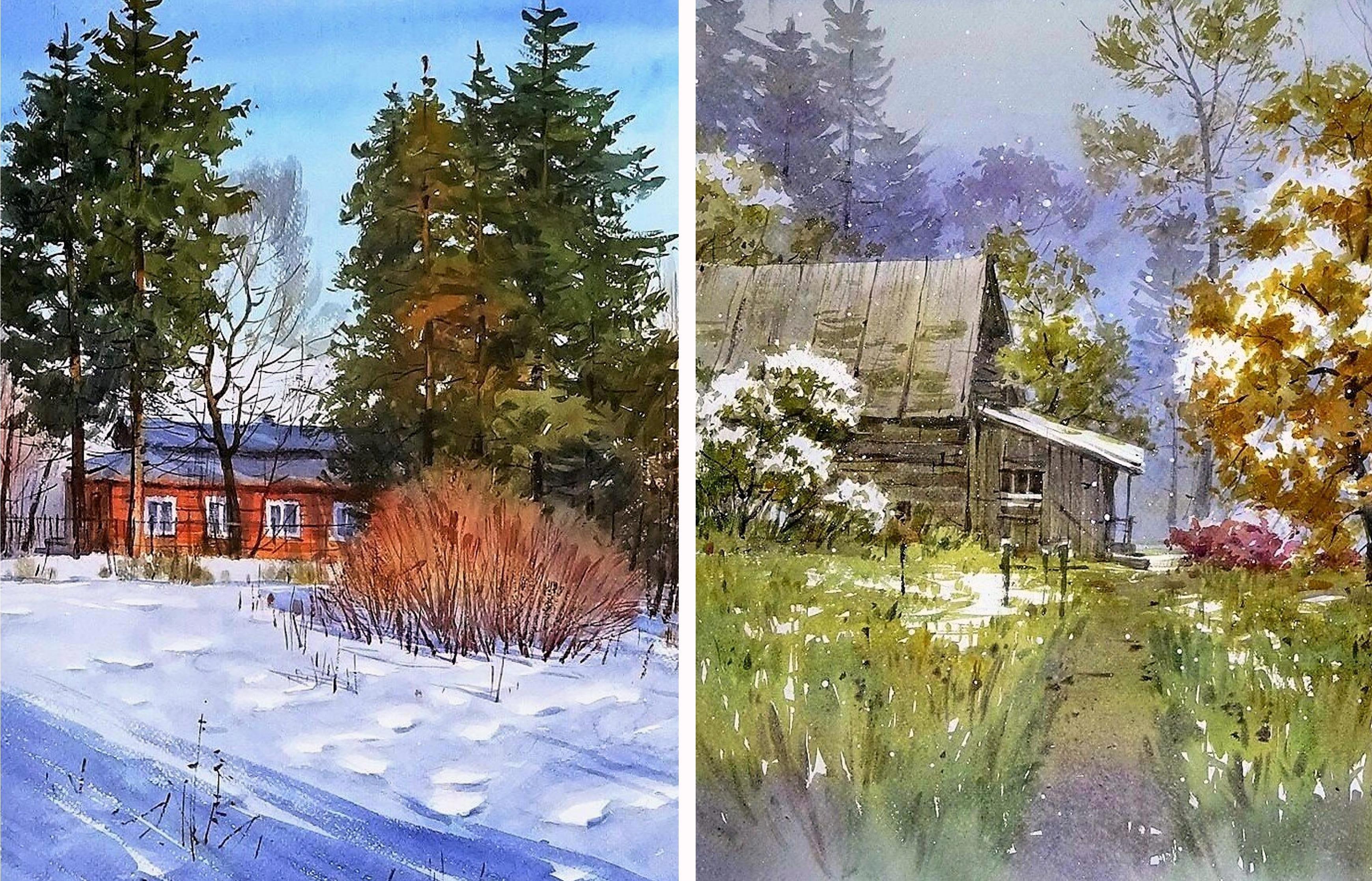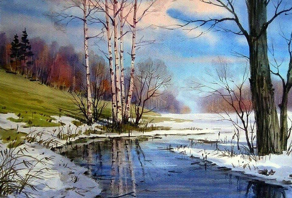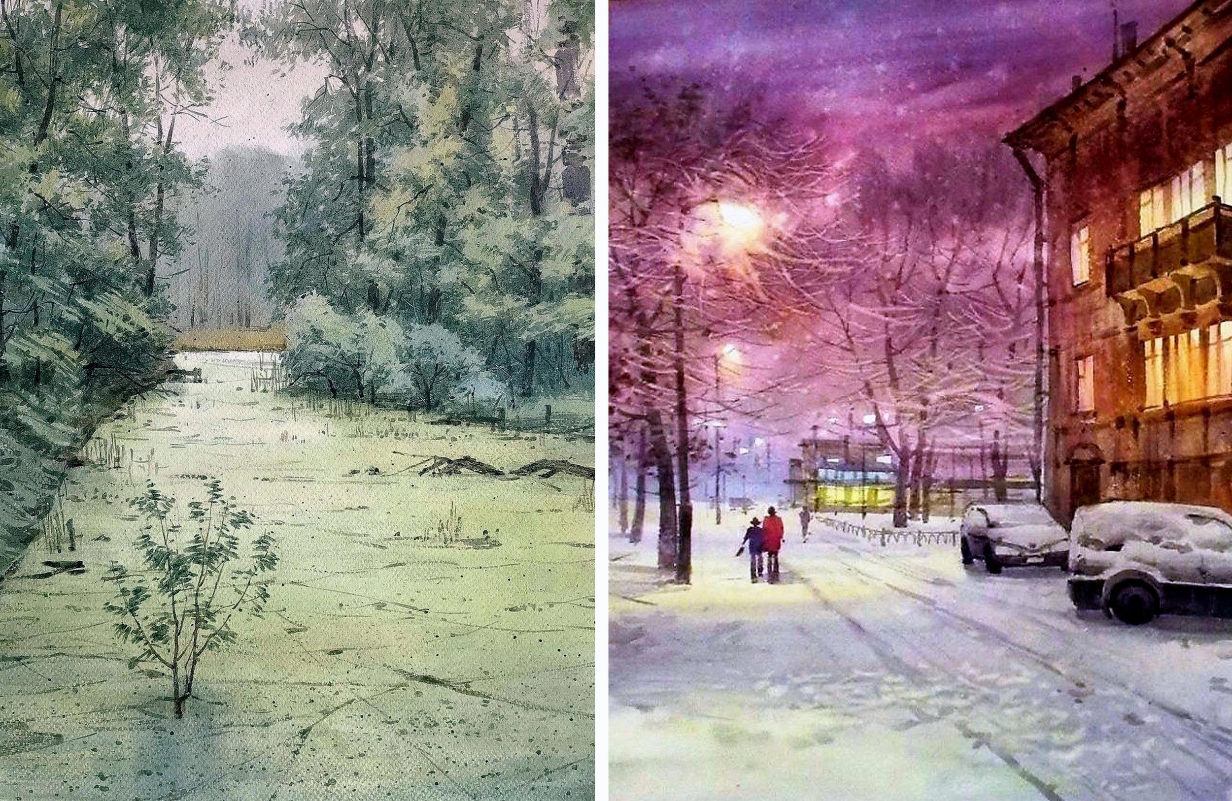 Автор: ЛилияДорогие друзья, предлагаю сегодня познакомиться с работами акварелиста Ильи Горгоца. Мне очень нравится как будто небрежная манера письма художника и наполненность настроением каждой его картины. На них вода прозрачна, снег пушист, отражение слепит глаза. Уверена, что вы тоже ощутите это.