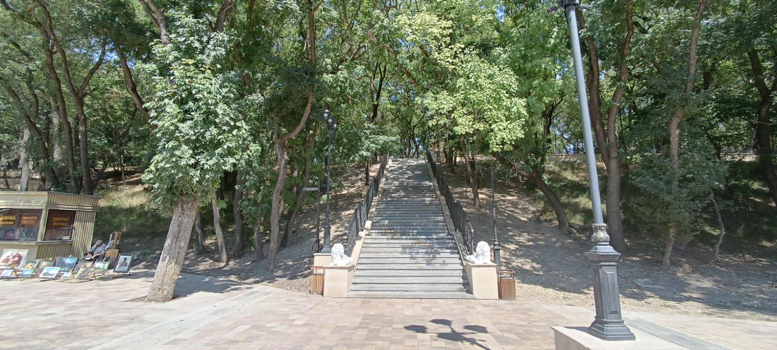 Из Нижнего парка в Верхний с нескольких сторон ведут ступеньки. Выглядят они очень зазывно и хочется подняться по каждым из них.