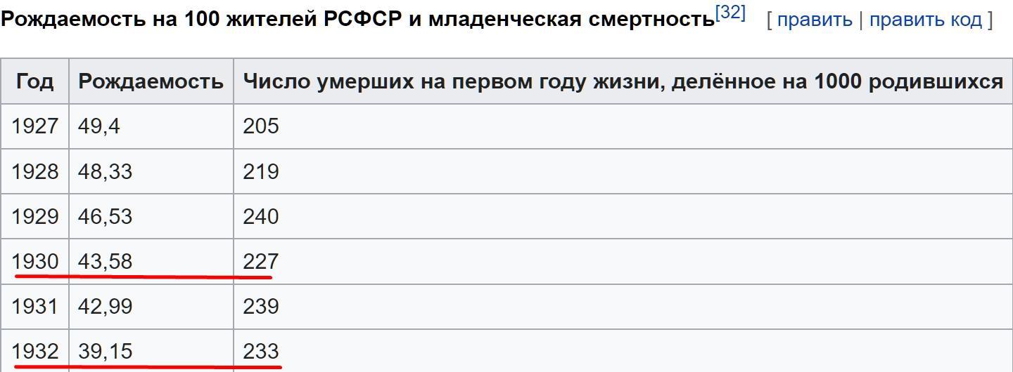 Просадка рождаемости превышающая "естественную" при индустриализации наблюдается в 1930 и 1932, этим периодам предваряется рост детской смертности у детей до 1 года.