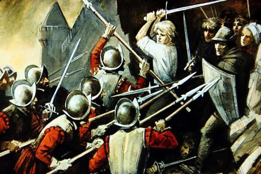 Решительность с которой недавние водовозы, плотники, каменщики и торговцы врубались в ряды лучшей в мире пехоты вскоре начала пугать испанцев. А ведь они были совсем не робкого десятка и большинство закалёнными в боях воинами. Кровь заливала землю и каменную мостовую городов. Женщины вооружённые сковородами, котелками наполненными горячей водой и кипящим маслом в спонтанно вспыхивающих сражениях вставали плечом к плечу со своими мужчинами. Обронённый убитым меч, шпага или кинжал тут же поднимал другой повстанец вонзая его в щель между стальными доспехами или под подбородок испанскому солдату незащищённому шлемом. Острые тяжёлые камни ещё недавно являвшиеся частью стен и оград чистеньких, уютных городков и деревень без промаха разили смуглокожих чужаков.