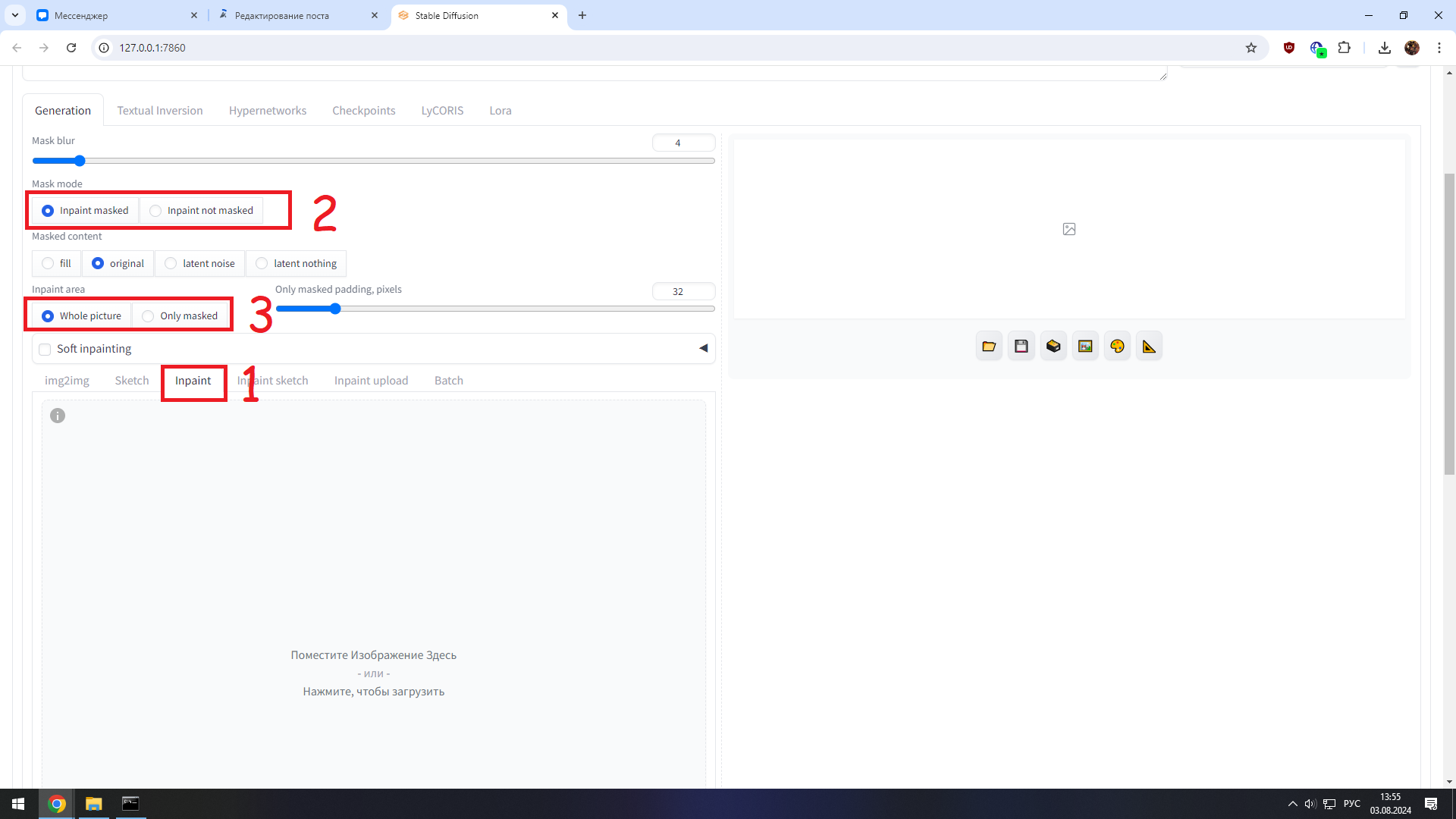 Параметр Only masked padding, pixels я никогда не трогаю, как и Mask Blur (размытие маски). Последнее нам потребуется изменять только для софт инпента.