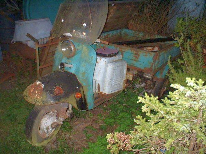 Автор: Евгений КрасНе встречаю я среди множества литературных произведений одной интересной, на мой взгляд, темы. Может быть потому, что люди пишущие довольно редко сами что-то умеют делать руками, а может потому что умеют, но не считают это чем-то, что может быть по настоящему захватывающим... не знаю. Но может всё же имеет смысл попробовать? Совсем не обязательно главный герой должен решать какую-то глобальную задачу по спасению мира. В конце концов этого с избытком есть в американском кино (у нас почему-то нет...) и уже порядком поднадоело, если честно. Поэтому вот информация для размышлений. Никаких заумностей. Просто увлечённый человек. Увлекается реставрацией старой техники. Точнее - специалист по мотоциклам и мопедам. То есть - довольно "редкий зверь" вообще-то. И вот этот парень находит на заднем дворе у соседа старенький грузовой мотороллер, долго-долго служивший своему хозяину верой и правдой, перевозя мелкие грузы по городку. С самых советских времён служил... но время шло, возникли проблемы с запчастями. Короче, всё как всегда. И тут ржавый труженик попался на глаза Мастеру! Вот так он выглядел в этот момент: