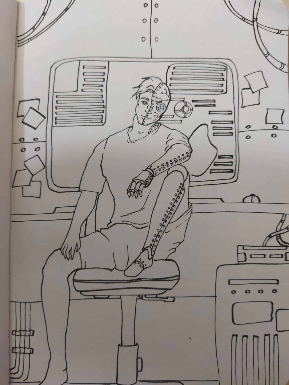 Второй арт по новой книге.) Думаю, что это будет киберпанк уже понятно.) Неожиданно для меня самой (впрочем, как и этот рисунок). Сильно в "ровность" линий не старалась. Это вообще мальца быстроарт за час с учетом обводки. Воть.