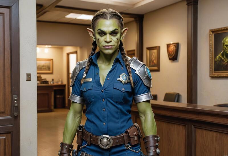 На картинке - персонаж пишущейся книги "Фонтан юности"; орков Варкрафта помнят, вероятно, все, но в книге общее с орками - только внешний вид. Картинка иллюстрирует знакомство протагонистов, Катерины Полозовой (она же Карин рем ан Корвус) и её напарницы, той самой девушки-орка Лиры рем ан Морвен (самоназвание по книге "рима").