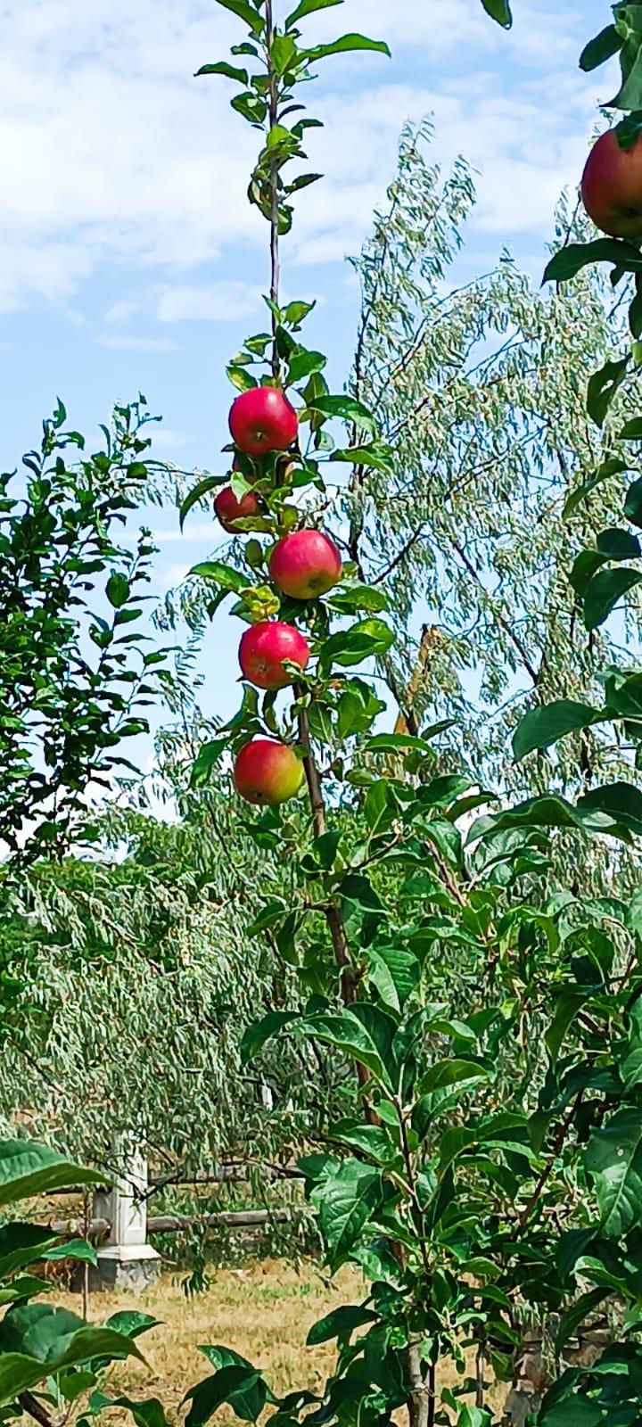 Сегодня ей удалось поймать 4 ящерки и она была очень довольна. Прогулка - удалась! А еще мы видели сад с низкорослыми фруктовыми деревьями. Низкие деревья, стояли все усыпанные грушами. Но на снимках было не особо красиво, как-то груши слились с листвой. А вот яблонька порадовала!