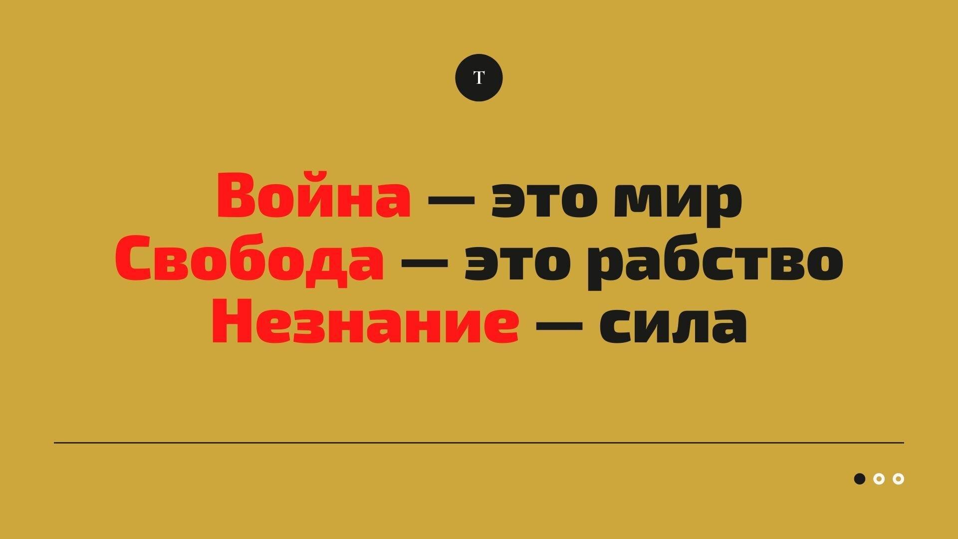 Эти лозунги в книге воспевают двоемыслие — способность верить во взаимоисключающие вещи, если это необходимо партии