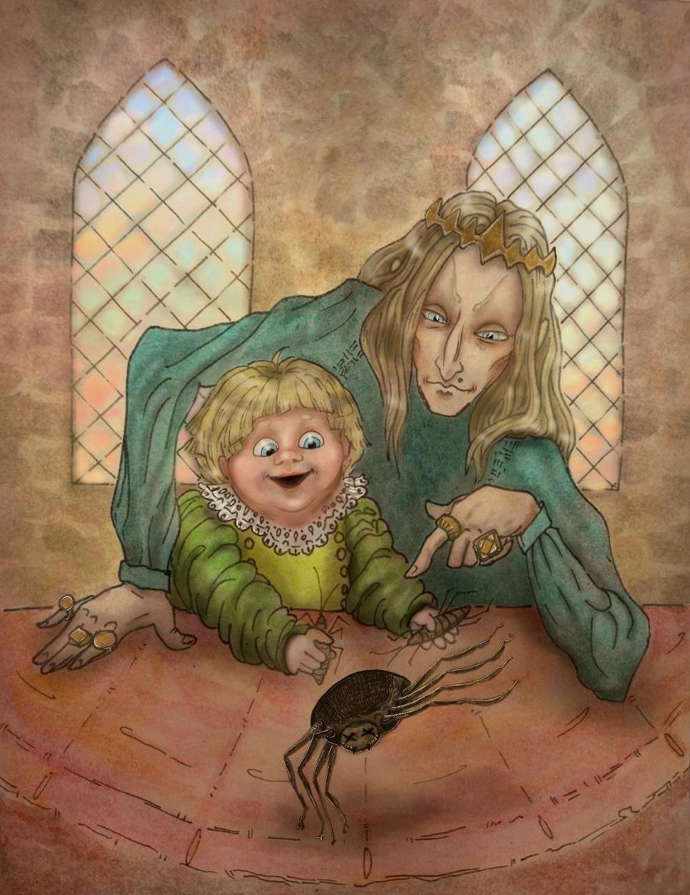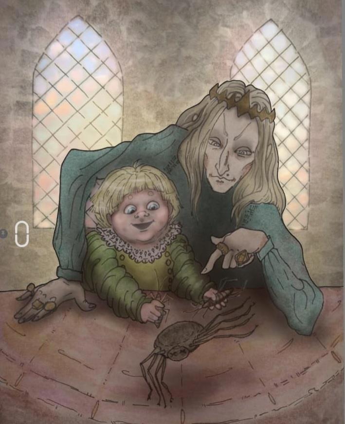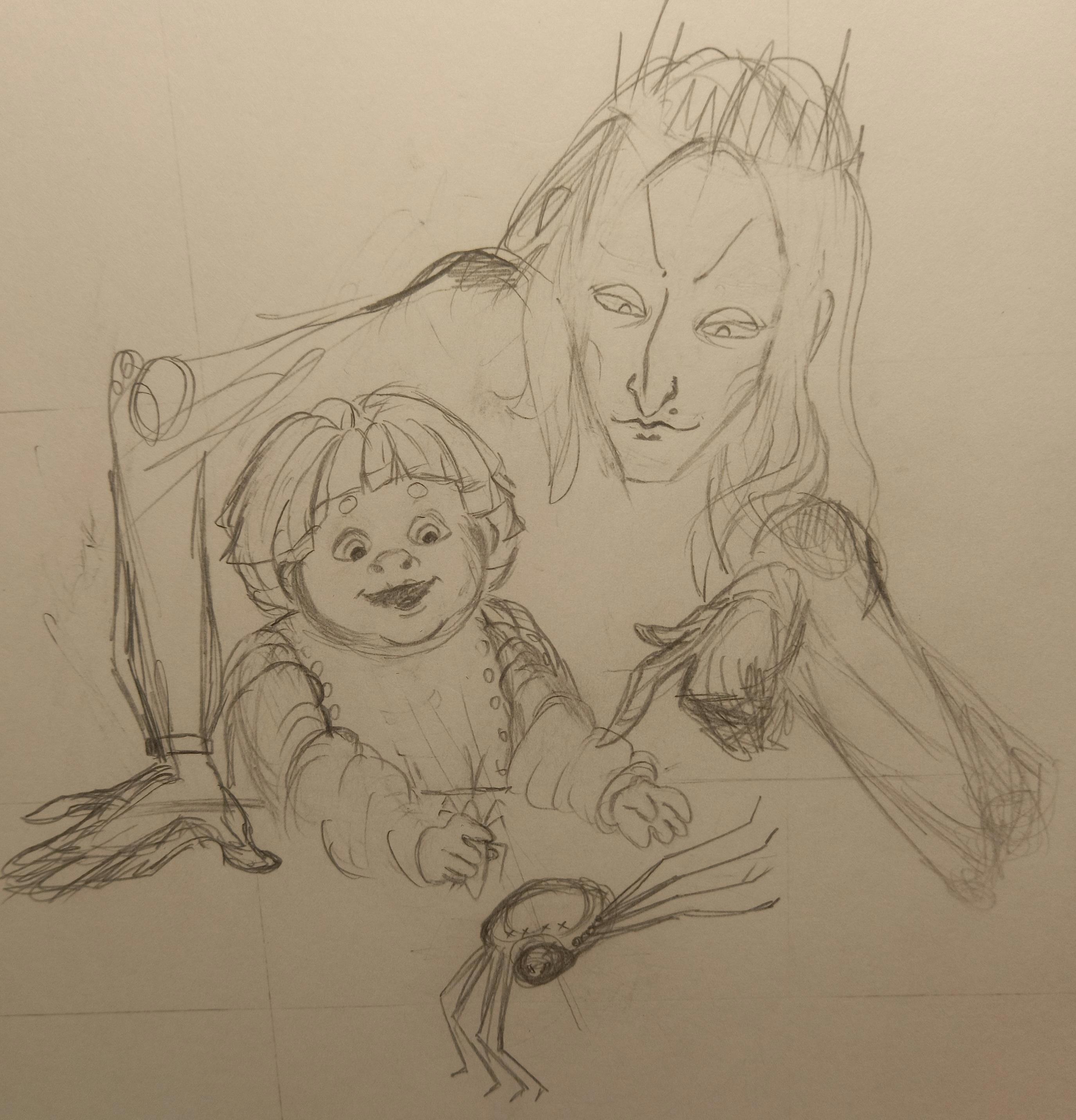 Адский ад - рисовать детей, особенно, если не любишь детей. Сто самых мимимишных референсов, а получается все равно кукла Чаки... Но, слава всем богам, что детей у Далина в книгах не запредельно много.