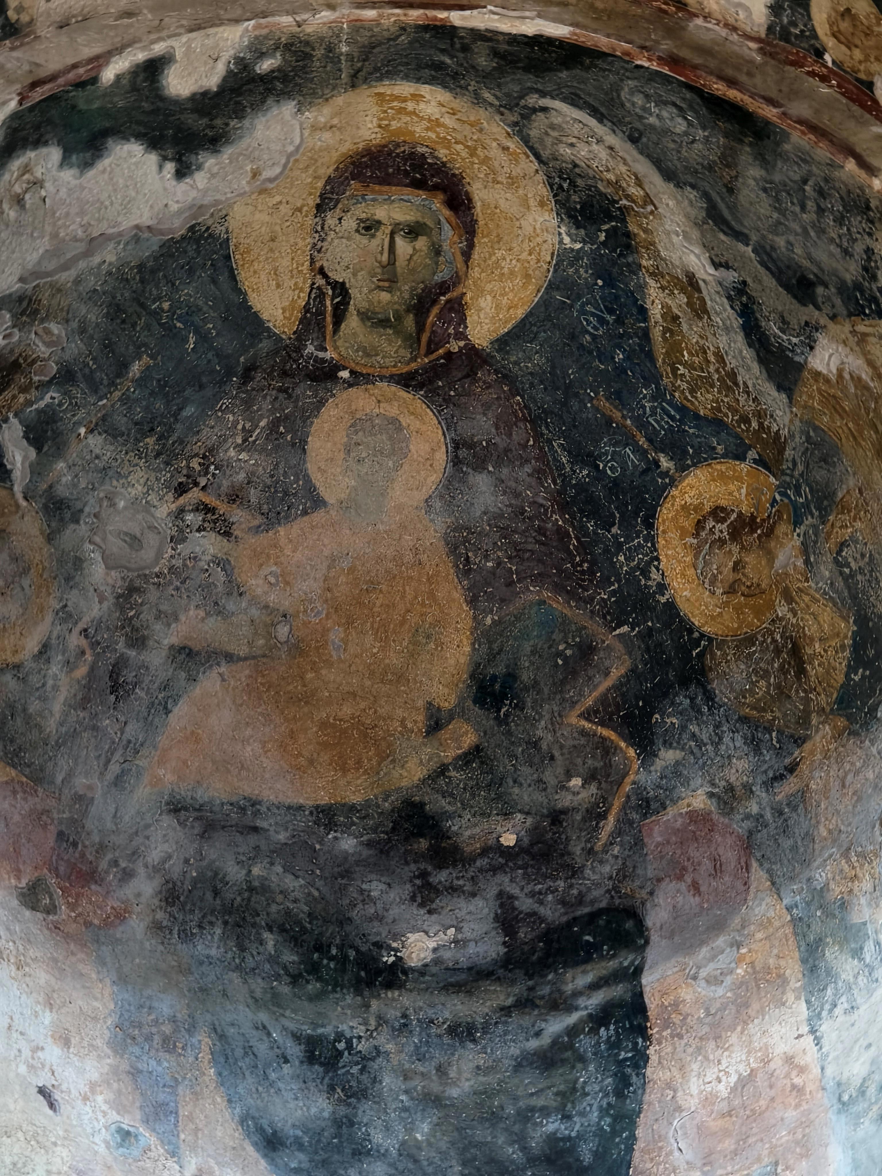 В самом поселении на возвышенности находится храм, который мы планировали посетить. Внутри него чувствуется та древность, поскольку он до конца не отреставрирован.