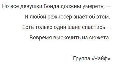Александр Туркевич, «Все девушки Бонда...» - нечто невнятное с эпиграфом группы Чайф, собственно и пересказывающее эпиграф. Зачем?