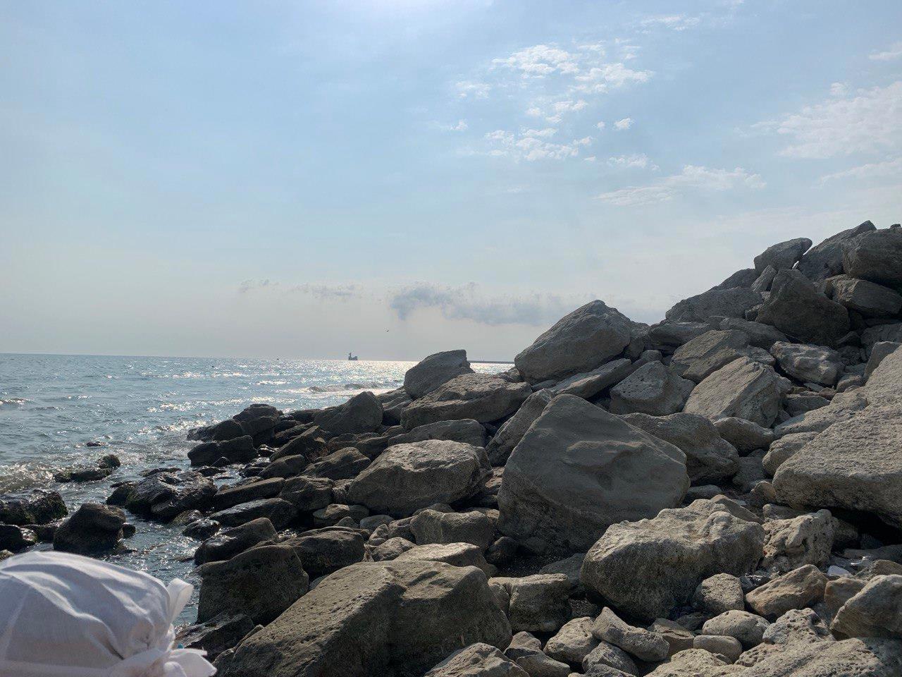 Да, на фоточке с камнями- на заднем плане, в море- это не корабль, а цех для испытания торпед. Собственно и город построили когда-то вокруг завода по производству торпед. Завод сейчас не работает, а испытательный цех остался.
