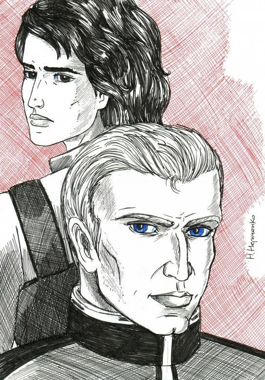 Мне вот тут совершенно внезапно (ничто не предвещало, как говорится) сюрприз преподнесли. Художница-иллюстратор Наталья Немченко нарисовала несколько иллюстраций к моей фан-повести "Беллиорские ёжики настолько суровы..." из цикла "Как они встретились (миры сказок А. Волкова)" по сказке "Тайна заброшенного замка". Вчера я весь день мурчала, рассматривая своих героев, рисовку, штрих... Правда, Эля почему-то сделали светловолосым - хотя он брюнет, как и его визуализатор, но это, должно быть, повлияло общефэндомное убеждение, что менвиты - сплошь истинные арийцы блондины и рыжие. Я этой точки зрения не придерживаюсь (у Волкова в каноне на эту тему никаких чётких уточнений нет). Но, в принципе, это не настолько критическая деталь облика героя. Самое главное - лица и их выражения.