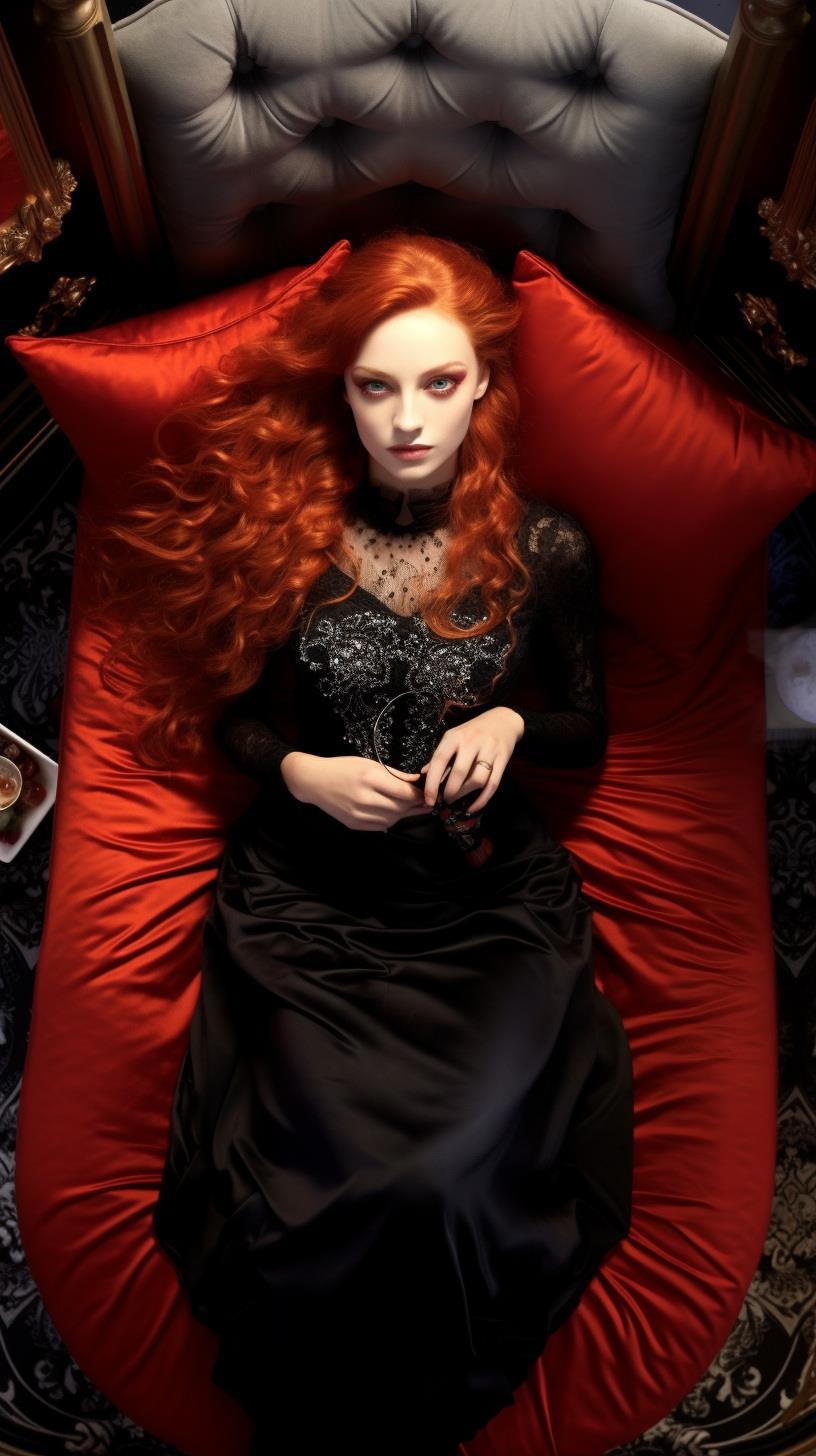 Начнем с рыжей. Промт у обеих сетей почти одинаковый - рыжая лежит в постели. Сперва...