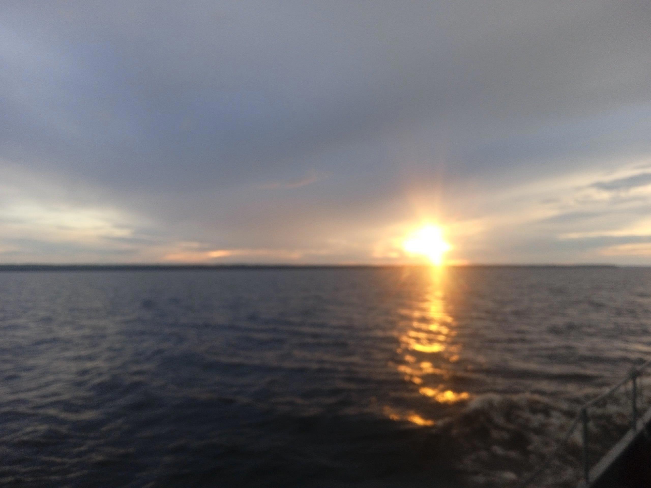 Однако и это не означало, что мы доберёмся до дома быстро, наше судно не очень быстроходное. Поэтому пока мы находились в пути, начался закат