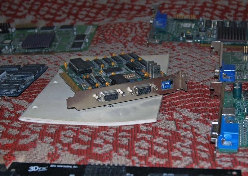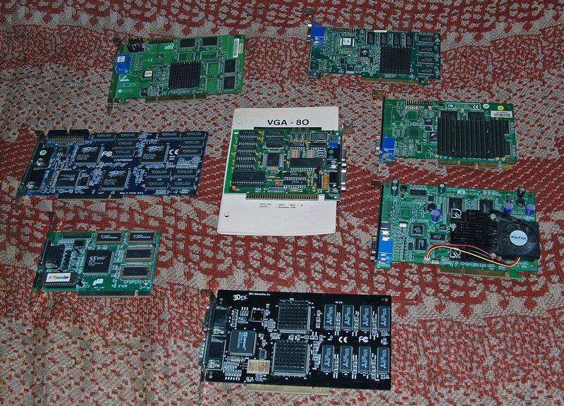 Автор: Максимилиан ЖирновБыли же времена. Трава зеленее, небо голубее, солнце... желтее, что ли? Девушки еще были куда краше. А я работал в компьютерной фирме. И у меня была своя коллекция старых видеокарт. Вот ее малая часть - здесь S3 Trio64, акселераторы Voodoo 1, 2 и 3 (PCI и AGP), Riva TNT2Pro и GeForce 2GTS: