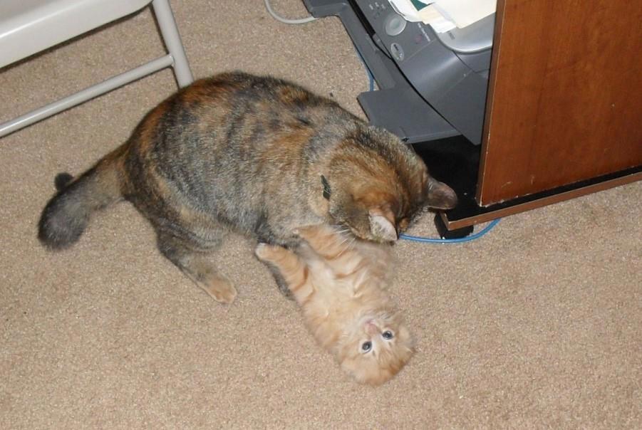 Когда привезли его домой, он стал гонять нашу старушку, пришлось завести ему дружка помоложе: