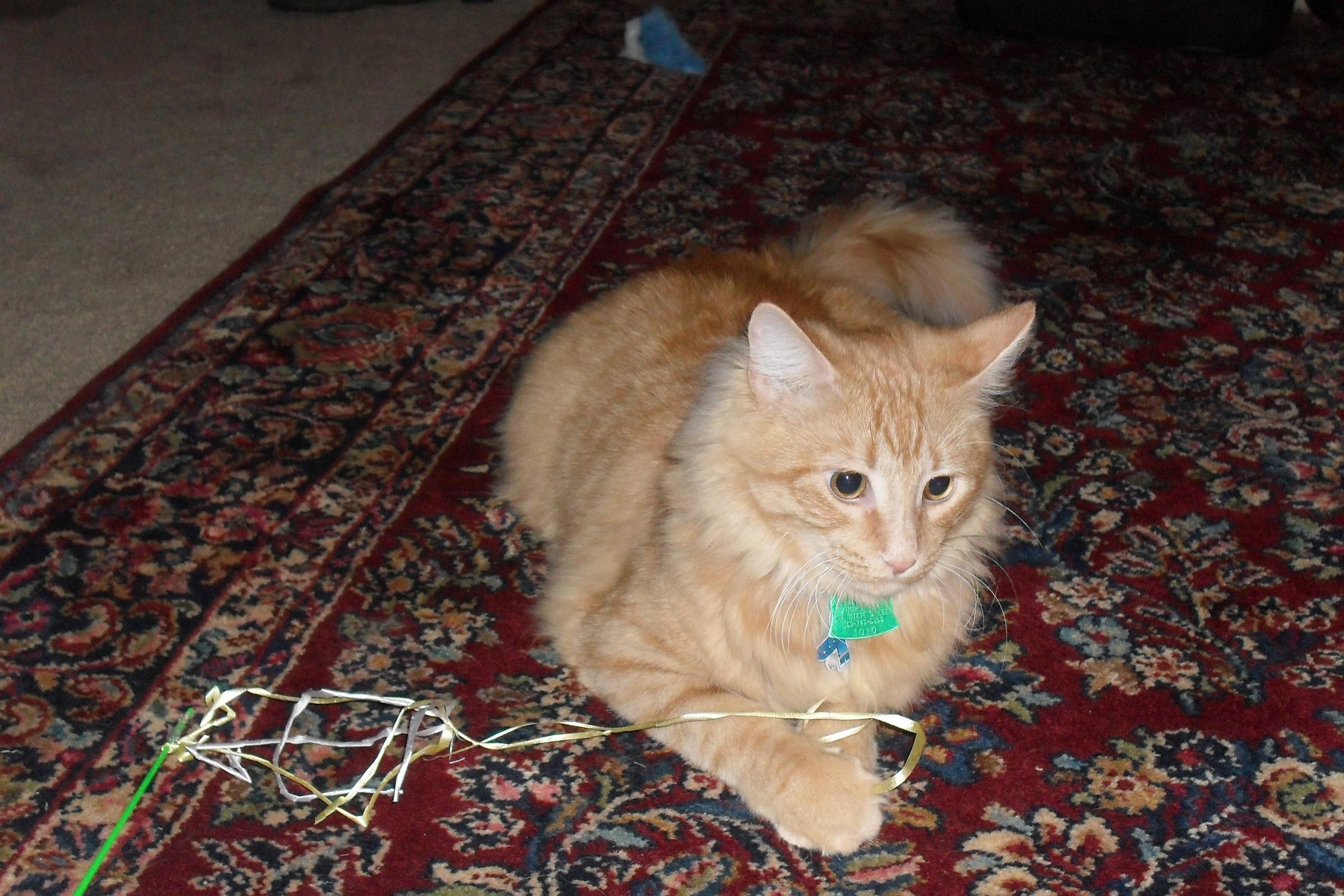 Pumpkin (Тыквачок). Сосед нашёл под доками (на работе) мяукающий комок грязи за день до Хеллоуина, осюда тыквенная кличка. Когда отмыли - оказалось вот такое: