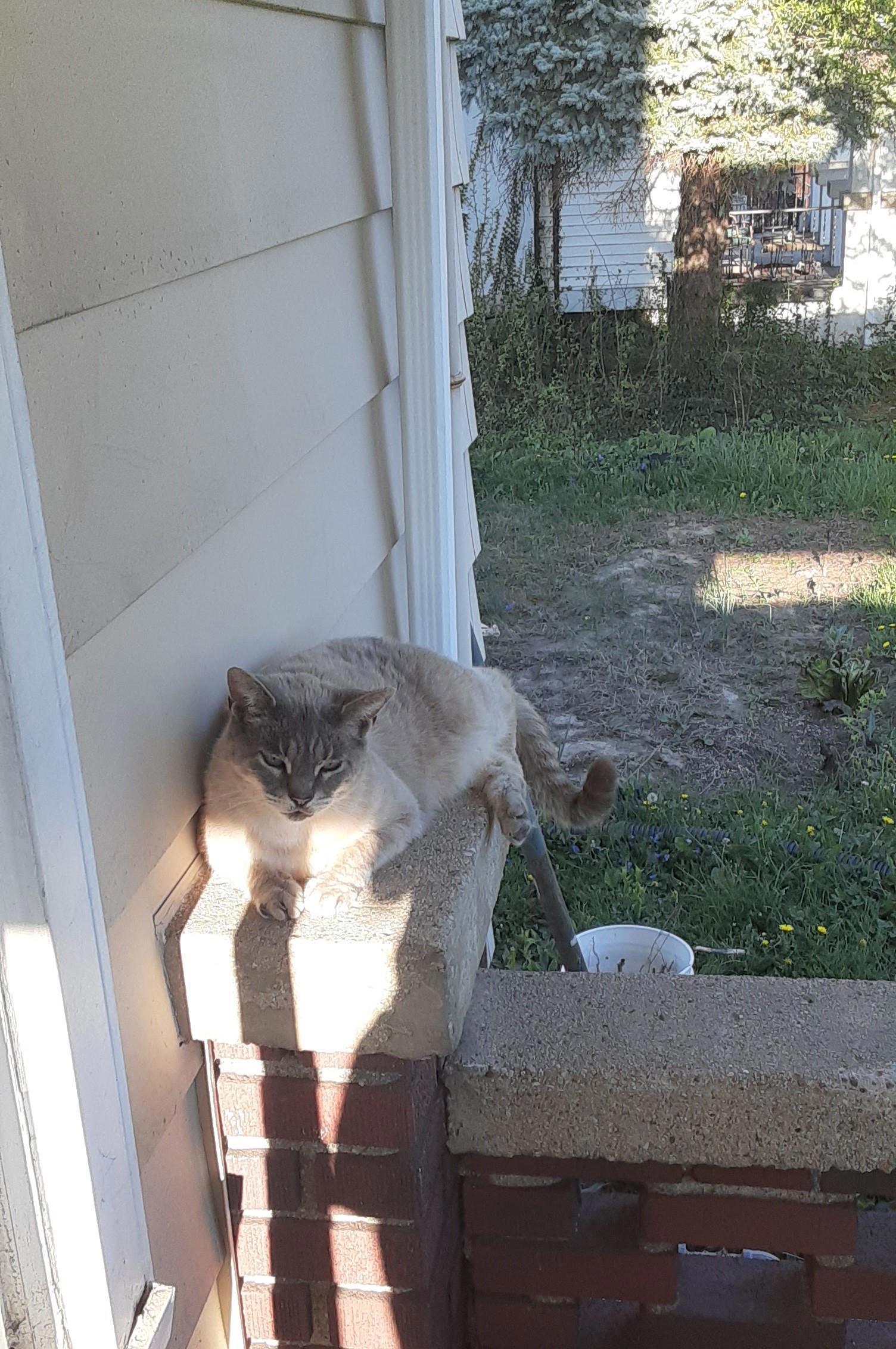 Он тёрся об неё, ходил за ней везде. Оказалось - соседский. С котёнком дети играли, а как подрос, метить стал - его на улицу сослали... Ну в общем, мы испросили разрешения, свозили в ветеренарку, проверили, все привики сделали и забрали домой :) Потом переехали и увезли с собой.