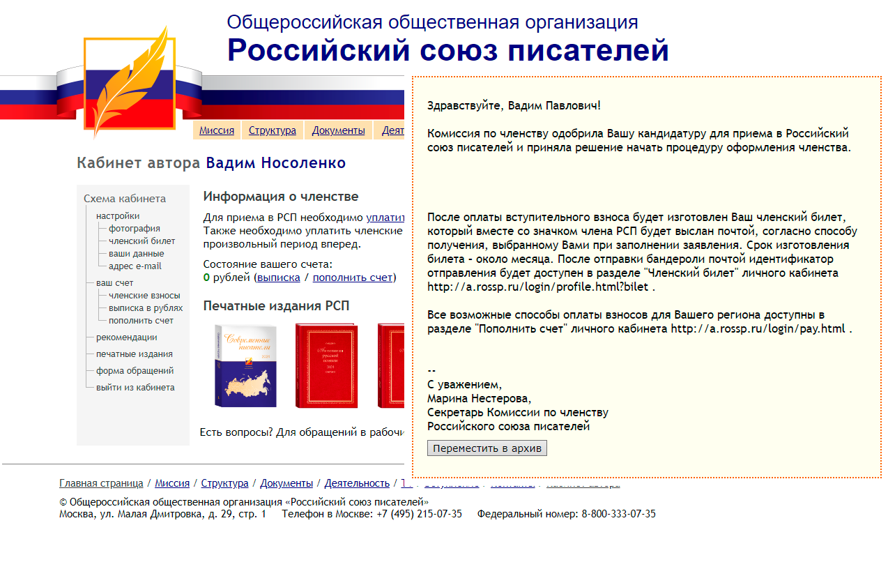 Автор: Носоленко ВадимВыражаю искреннюю благодарность руководству Союза за оказанное мне доверие.