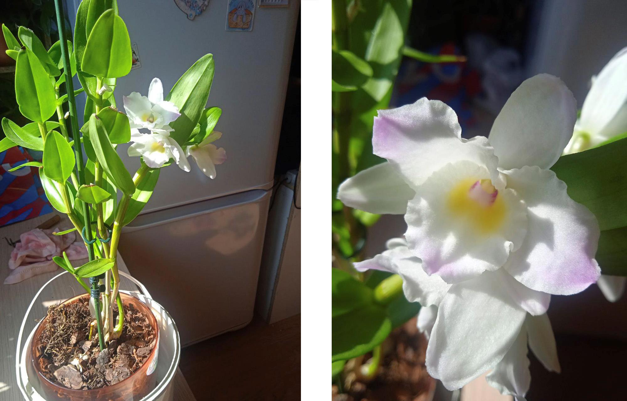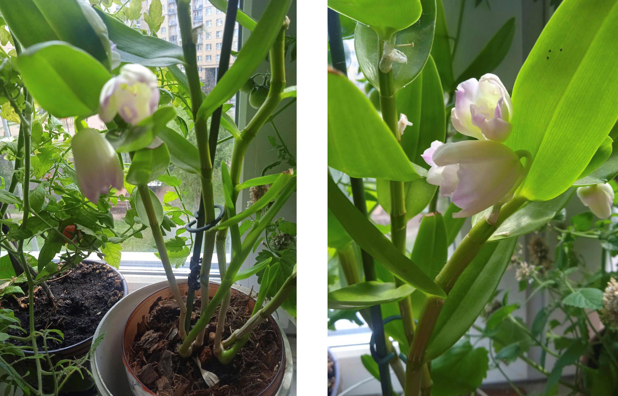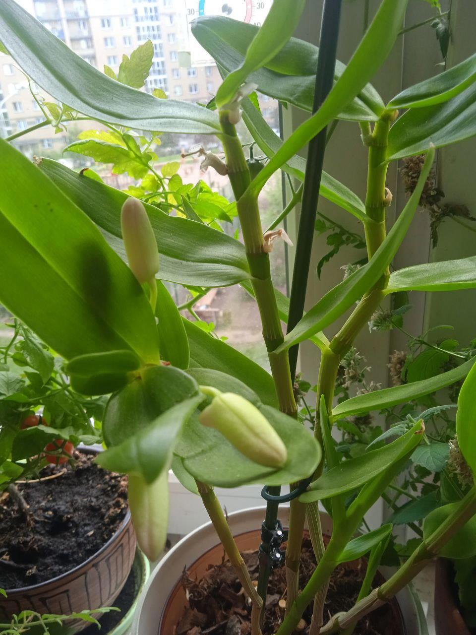 Автор: Риона РейВчера с утра заметила, что бутоны на дендробиуме, которые раньше были точно в цвет листьев, заметно посветлели.