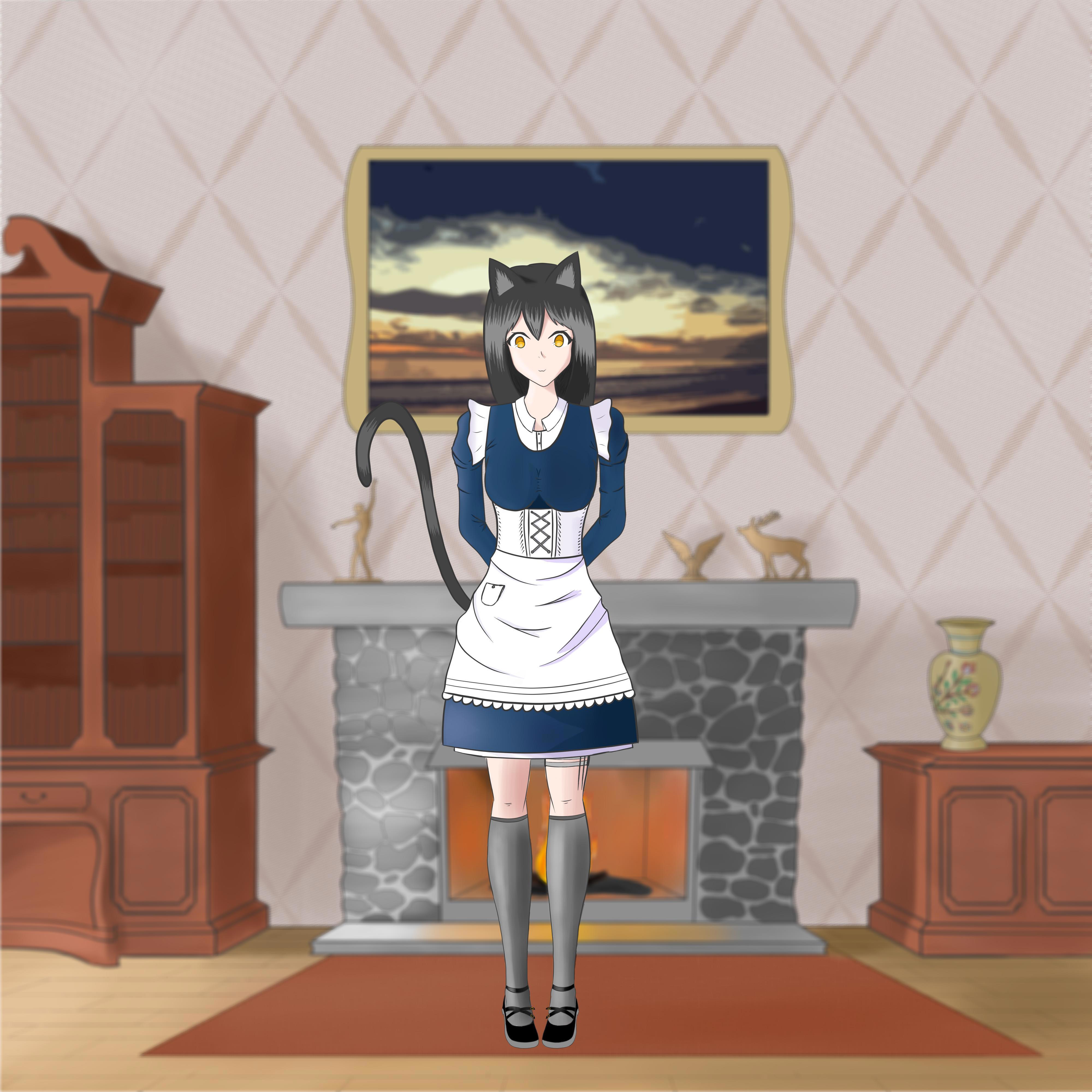 Нарисовали мне мою Неку в форме горничной, как раз в старой гостинной ГГ.