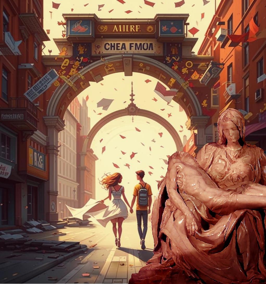 Сноска: в стихотворении встречается слово - "пьета" - это от итал. pietà — сострадание, любовь, жалость, милосердие, от лат. pietas — набожность, благочестие — западноевропейское название темы оплакивания Иисуса Христа. Упомянутая в тексте пьета «Оплакивание Христа», или «Ватиканская Пьета», — одна из ранних и самых знаменитых работ выдающегося художника эпохи Возрождения, скульптора Микеланджело Буонарроти. Композиция Пьета была создана 24-летним