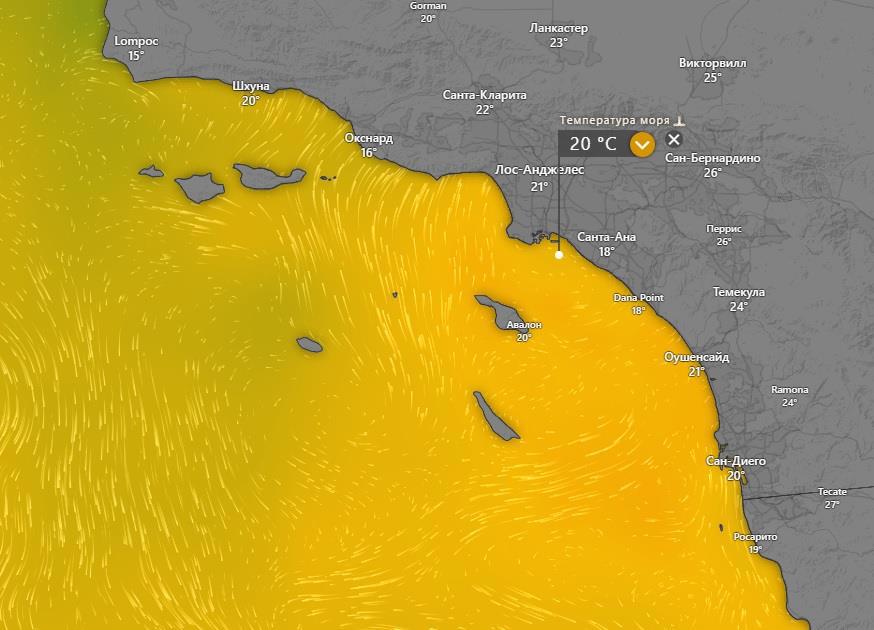 Единственное место на западном побережье США, где можно окунуть свою задниц в океанскую водичку это районе Лос-Анджелеса - Сан-Диего, где вода прогревается до +20.