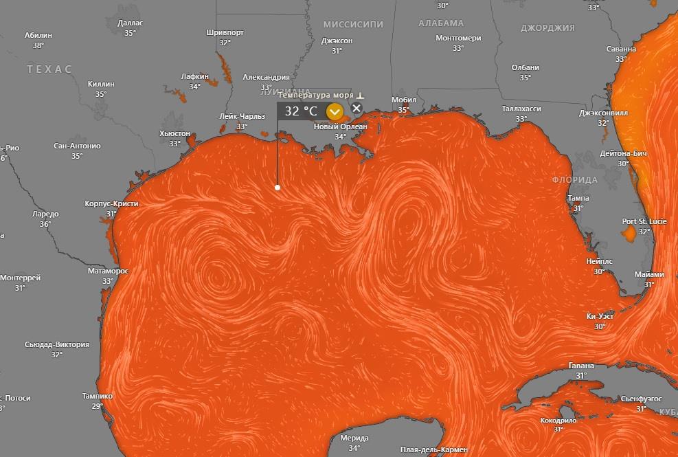 Ну а в Мексиканском заливе и Флориде уже +32, что многие сочтут перебором. Такой вот контраст.