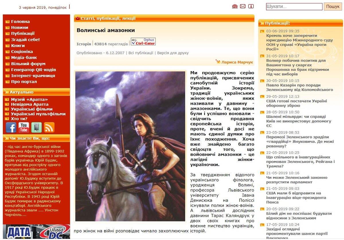 Украинские ученые - особенно в начальный период независимости - сделали множество эпохальных открытий. В частности, профессор Львовского университета Иван Денисюк открыл существовавшие на Волыни конные полки женщин-амазонок.