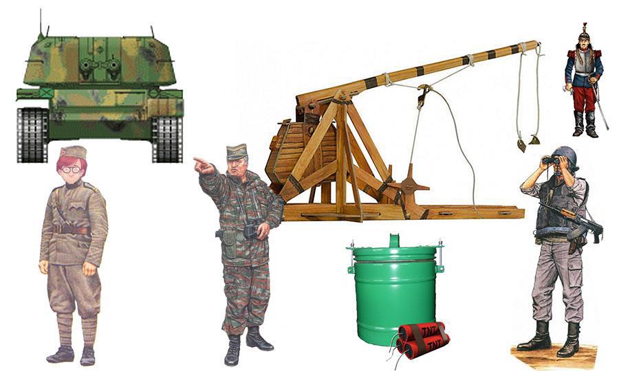 И тут Ботаник Мирко превзошел сам себя. Обнаружив в тыловом хозяйстве толовые шашки, несколько баллонов с жидким газом, канистры с бензином и несколько ящиков с 152мм снарядами, он предложил построить требушет (trébuchet), "Византийский миномет", как он его назвал. Это была, по сути, большая катапульта, с ресурсом 5-10 выстрелов, на дистанцию выстрела до пятисот метров. Мирко вспомнил статью о капитане Фаве, который по высочайшему повелению, императора Луи-Наполеона Бонапарта III, в 1850 году построил рабочую модель Требушета.