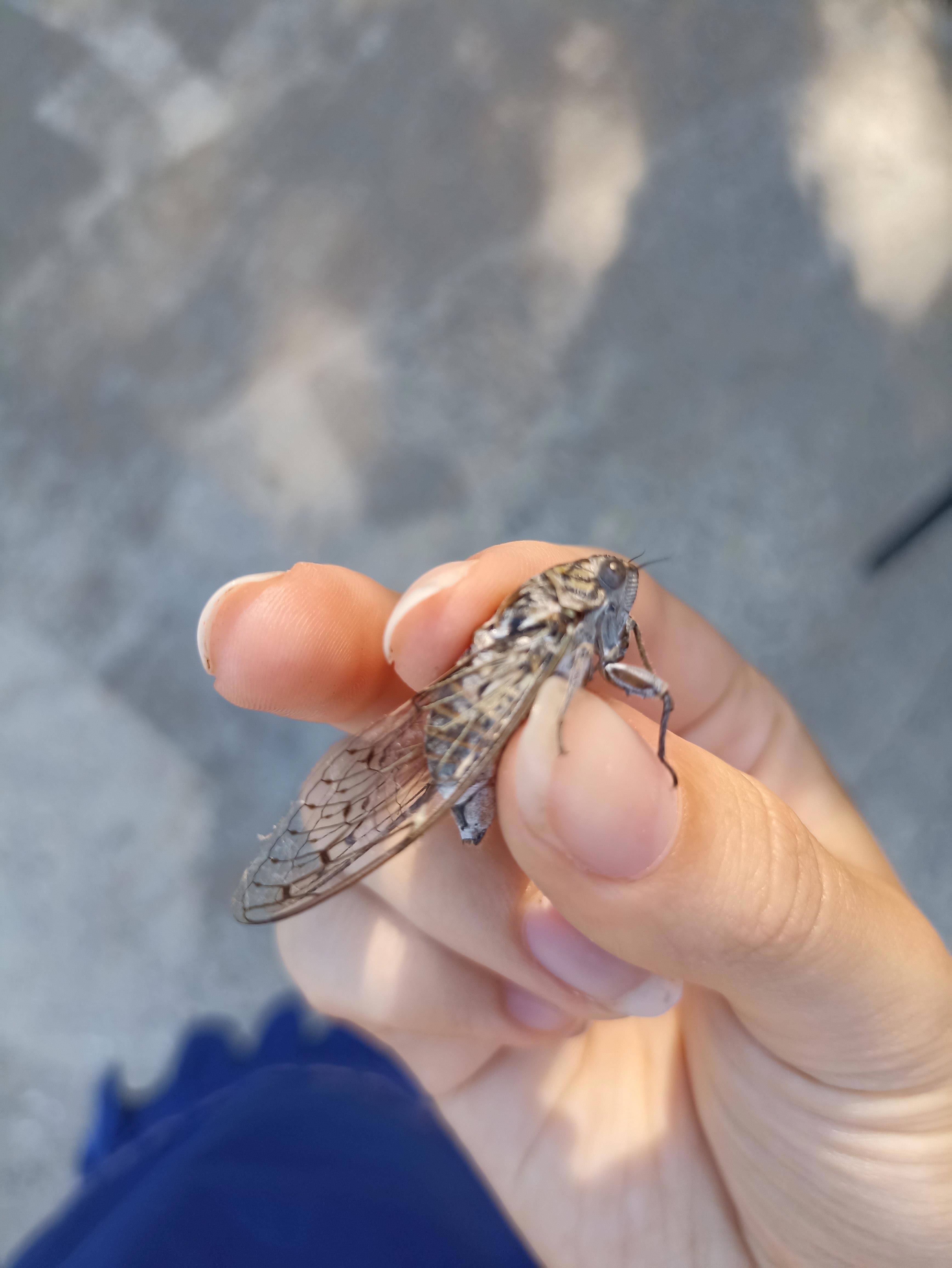 Отличие лета от зимы на самом деле очень заметно в звуках: весь день трещали вот эти товарищи на фото выше. Это цикады, они ОЧЕНЬ громкие. Обычно их не поймаешь, но эта цикада залетела не в ту дверь))))